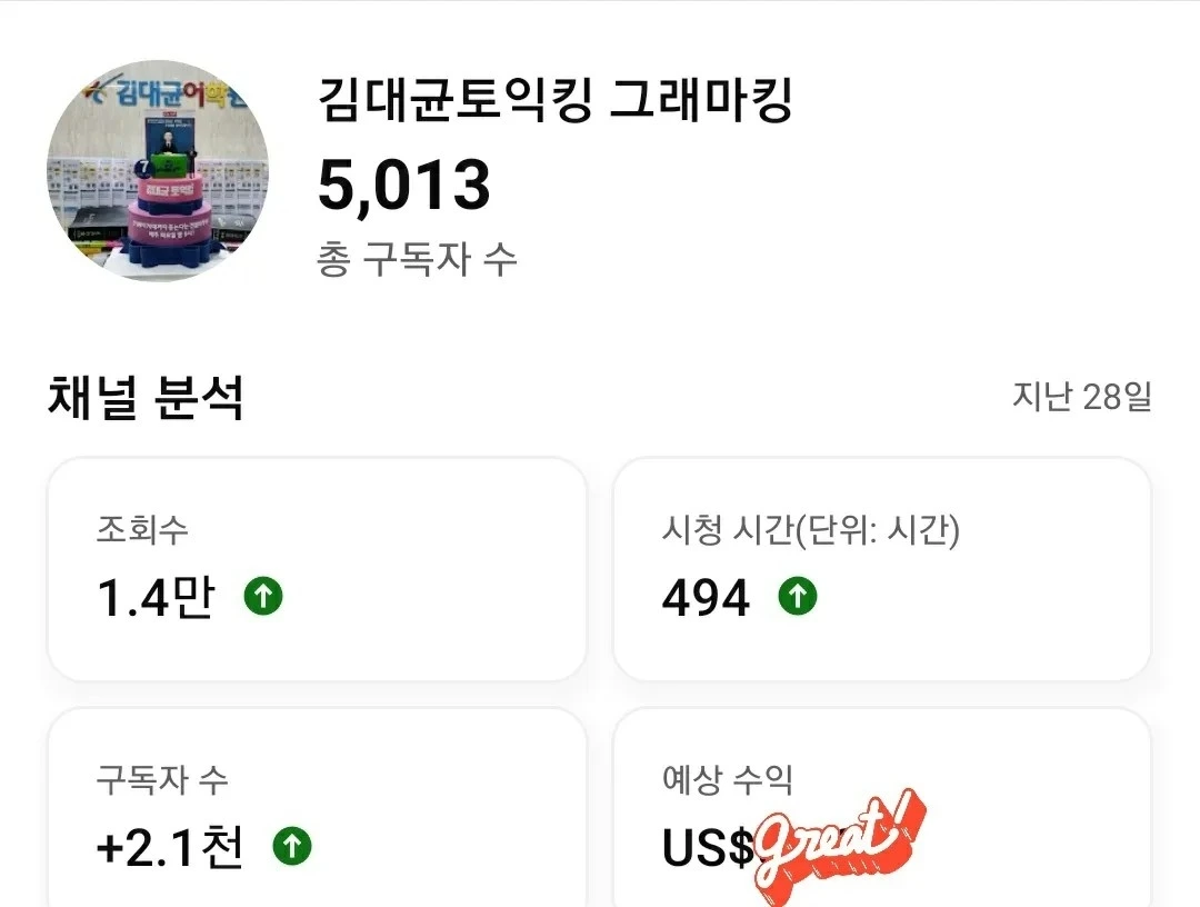 김대균토익킹 그래마킹 유튜브 구독자 5000명 돌파!
