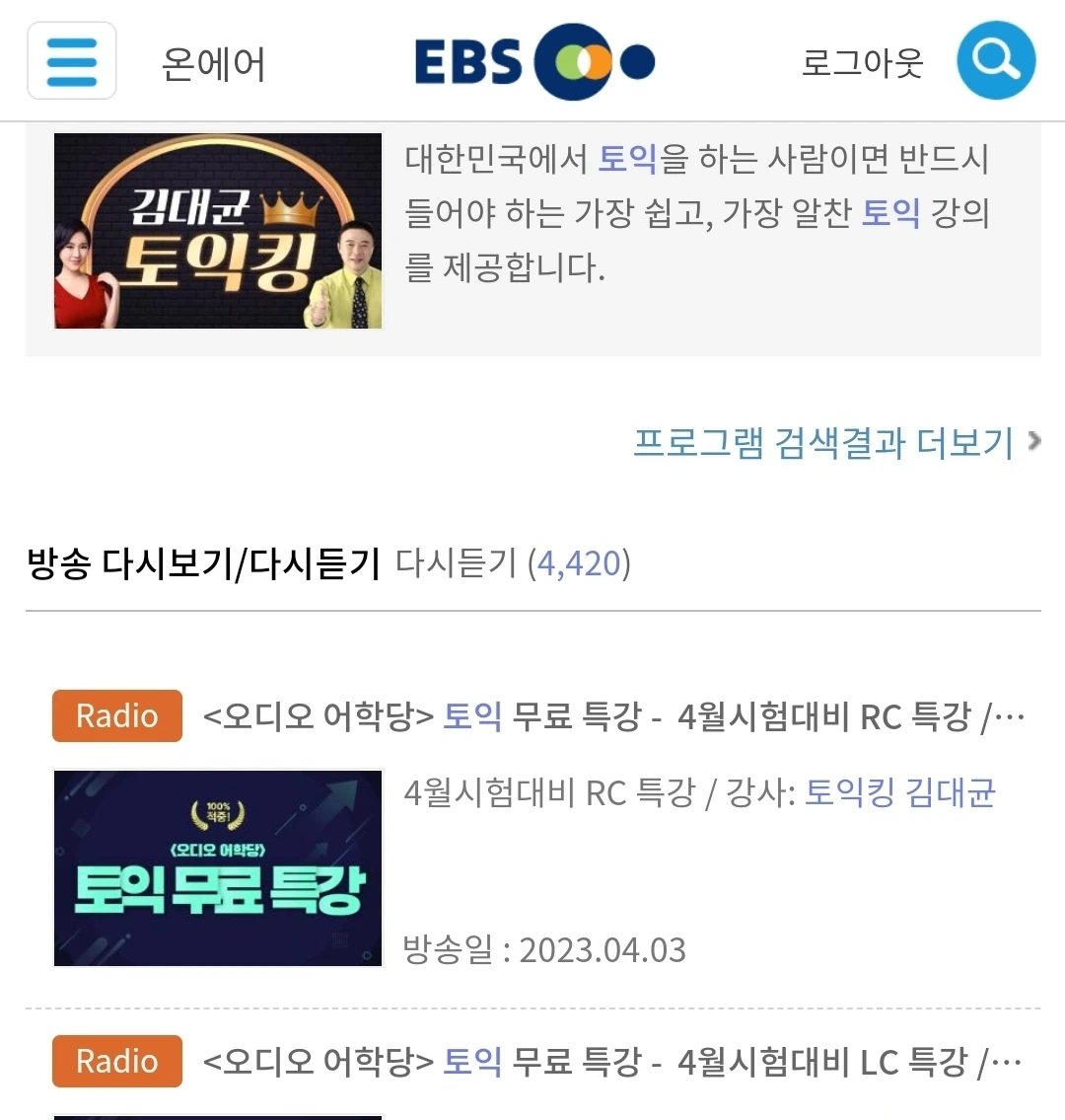 EBS 김대균토익킹 방송은 새롭게 발전합니다