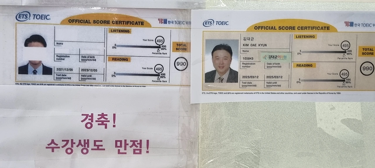 토익 450여회 최다응시 최다만점강사 김대균토익킹
