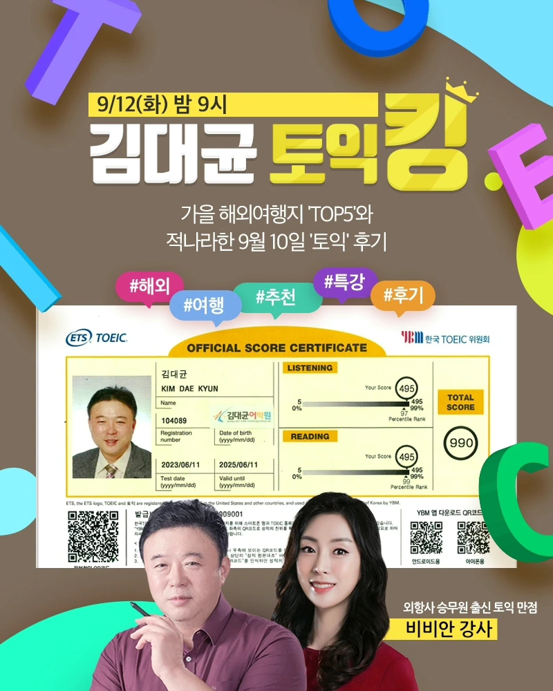 김대균토익킹 본업은 김대균어학원 토익강의 토익최다만점 기록 진행