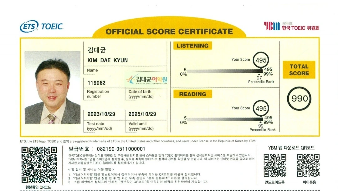 Dae Kyun Kim의 브런치입니다. 토익 최다응시 만점강사 김대균 김대균 영문법 김대균 맛집 김대균어학원 원장