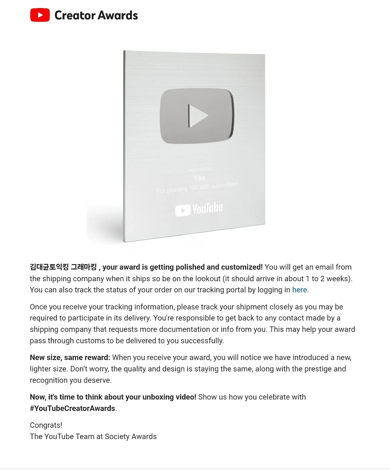 경축! 김대균토익킹 유튜브 실버버튼 수상
