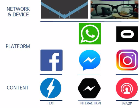 예컨대 페이스북은 아퀼라 프로젝트를 통해 통신망 구축에, 360도 카메라나 VR 기기 등 제작을 통해 디바이스 생산에 나선다. 이는 최근 화두가 되는 노라인(no line), 즉 온오프라인, 상품과 서비스, 현실과 가상 등 경계가 무너지는 현상과도 일맥상통한다 [4].