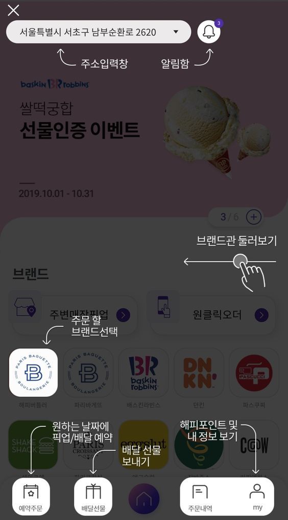 코치마크 유형도 꽤 흔하다. 디지털 프로덕트에서 사용자에게 알려줘야 하는 특장점들, 기능들을 어두운 배경 위에 화살표와 함께 '이건 뭐고, 저건 뭐에 쓰는 것'이라고 노트를 남김으로써, 구석구석 숨겨진 디테일에 대해 놓치지 않고 체크할 수 있는 온보딩 UX방식이다. 무조건 랜딩페이지에서만 보여줄 수 있는 것은 아니며 화면마다 저렇게 초기 접속 시 코치마크의 형태로 온보딩경험을 디자인할 수도 있다.