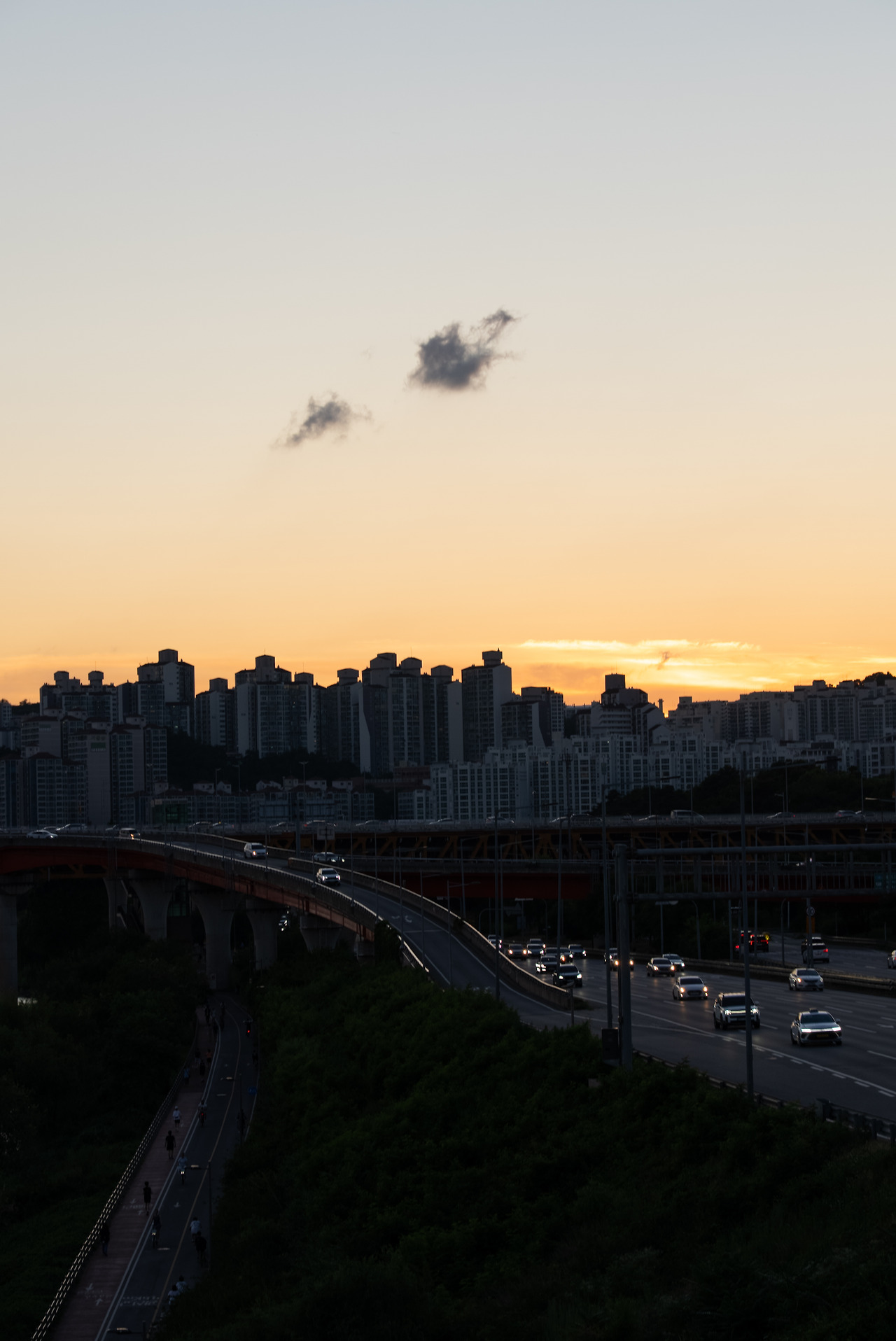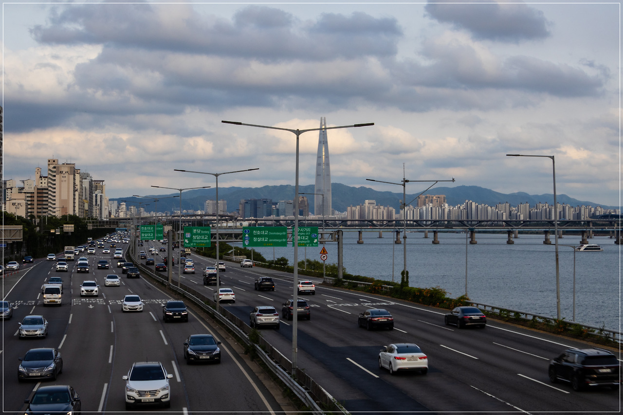 내 발아래는 강변 북로에 수많은 차들이 쌩쌩~하며 경쾌한 소음과 바람을 일으키며 달린다.