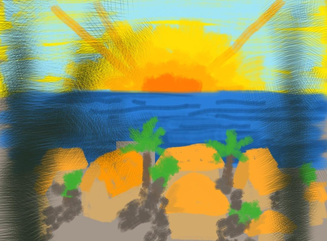 야자수 사이로 멀리 바다가 보이고 그 바다의 끝에 오렌지빛의 해가 저물고 있었다. 그리던 그림을 잠시 벽에 기대어 두고 가족여행을 준비를 하고 있었다.