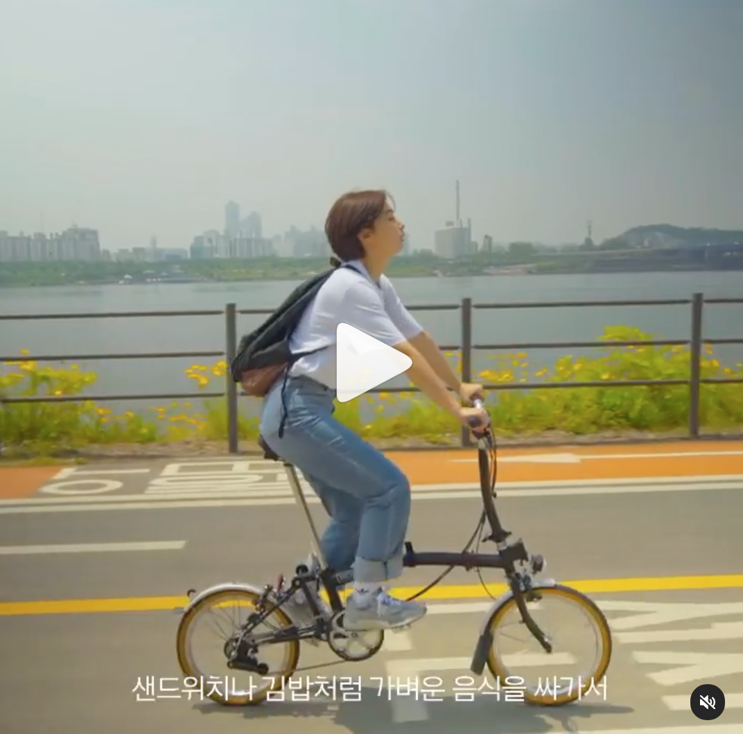 내가 브롬톤 병을 갖게 된 몇 가지 계기가 있다. 그중 첫 번째는 작년에 영상 콘텐츠를 제작하기 위해 글리님을 섭외한 뒤부터이다. 내 담당이었던 가방 브랜드의 영상이었는데, 가방을 메고 브롬톤을 타는 장면을 상상하던 나는 인스타그램에서 딱 글리님을 발견하게 됐다. 바로 만나 뵙고 미팅을 했고 브롬톤, 글리님과 함께한 영상은 역시나 내가 생각한 대로 멋있게 나왔다. 그때 브롬톤의 그 헤어 나올 수 없는 감성에 대해 조금 눈이 뜨이기 시작했다.