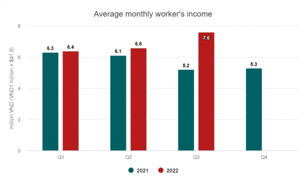 2022년 3분기 평균 임금은 760만동이다. (출처 : VNPRESS)