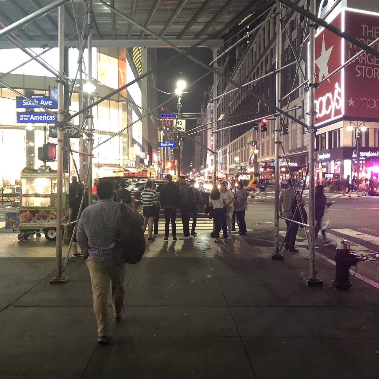 밤이 깊어지기 전에 나는 이만 숙소로 돌아가기로 했다. 온종일 걸은 탓에 나는 지친 몸을 한시바삐 푹신한 침대에 뉘이고 싶었다. 배웅을 나온 제리를 뒤로 하고 나는 가까운 지하철역으로 걸음을 옮겼다. 늦은 시간의 뉴욕 지하철은 꽤나 한산했다. 몸을 실은 지 얼마 안 되어 빠져나온 출구는 내 생각과는 달리 엉뚱한 곳이었다. 주위를 둘러보니 타임스퀘어 뒤편인 것 같았다. 지하철을 다시 타고 숙소 근처로 가자니 웬걸 한 번에 가는 노선이 없었다. 숙소까진 약 15분을 걸어가야 하는 거리였다. 결국 다시 걷는 수밖엔 없었다. 무거운 피로감에 두 다리와 발은 마치 소리 없는 아우성을 치는 것만 같았다.