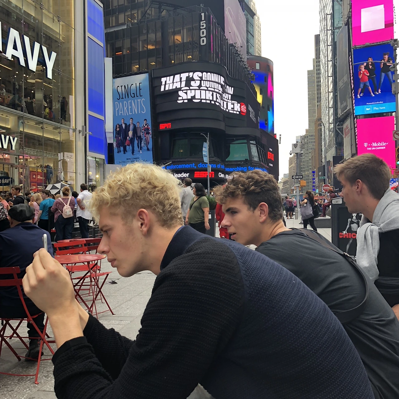 제리가 내 손을 잡고 이끈 곳은 록펠러 센터였다. 록펠러 센터 앞은 많은 사람이 벤치에 앉아 시간을 보내고 있었다. 그와 나도 빈 벤치에 나란히 앉아 갖가지 화제를 입 밖으로 꺼냈다. K-pop, K-food, 그의 대학 얘기, 친구 얘기, 여행 얘기 등등. 번역기 어플에 의존하여 우리의 대화는 그럭저럭 잘 이루어졌다. 그와 정신없이 이야기를 나누다 보니 시간은 어느새 저녁때에 가까워졌다. 제리는 자신이 잘 아는 아이리쉬 펍이 있다며 그곳으로 나를 안내했다. 걷다 보니 빽빽한 빌딩 틈으로 주황빛의 땅거미가 슬금슬금 내려앉았다.