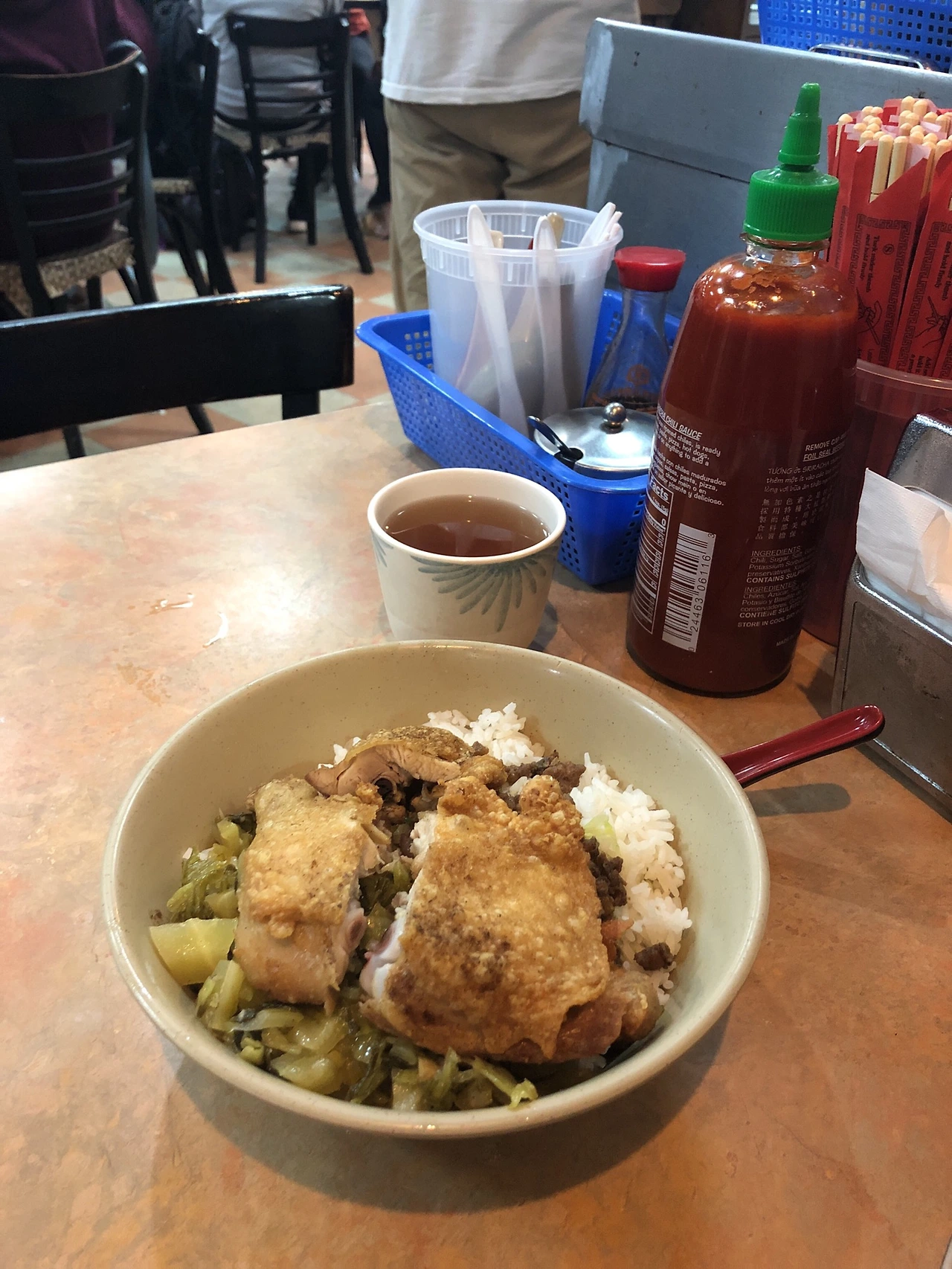 얼기설기 얽혀있는 골목을 헤매고 헤매 나는 겨우 가고 싶었던 식당 앞에 도착했다. 그러나 식당 앞은 이미 많은 대기자들로 붐비고 있었다. 약속 시간에 맞춰 가려면 내게 남은 시간은 퍽 여유롭지 않았다. 어쩔 수 없이 나는 옆으로 즐비한 중식당 중 사람이 제법 있는 곳에 들어갔다. 자리에 앉자마자 내온 따듯한 차를 홀짝이며, 나는 닭다리 산채 덮밥이란 메뉴를 시켰다. 손님을 응대할 때도, 주문 전화를 받을 때도, 그들끼리 대화를 할 때도 과연 중국인들의 큰 목청은 도드라졌다.