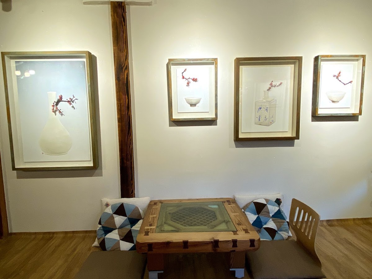 그러면 양림동에는 선교사 주택같은 서양식 건물만 있나? 그건 아니다. 호랑가시나무언덕에서 내려오면 오밀조밀 키가 낮은 한옥들이 숨어있다. 한옥을 개조한 카페, 맛집도 있지만 내 마음을 사로잡은 특별한 장소가 있다. 바로 골목 사이에 위치한 한옥을 개조한 함희원미술관이다. 권위를 내세우는 미술관이 아니다. 정감있는 한옥 미술관은 마을의 일부처럼 자연스럽다. 이질적이지 않고 그냥 동네 카페를 들리듯이 편안히 감상할 수 있었다.