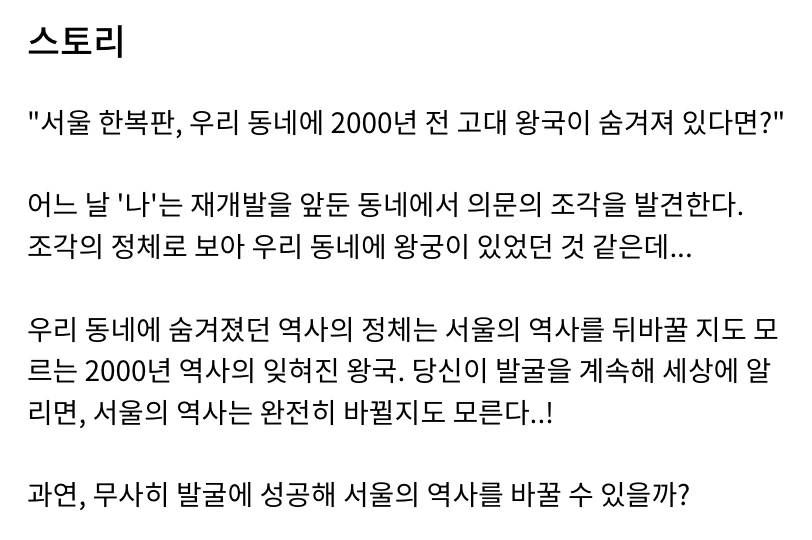 '서울에 이런 곳, 이런 이야기가 있었나?' 라는 생각이 들게 한 게임의 줄거리는 다음과 같다.
