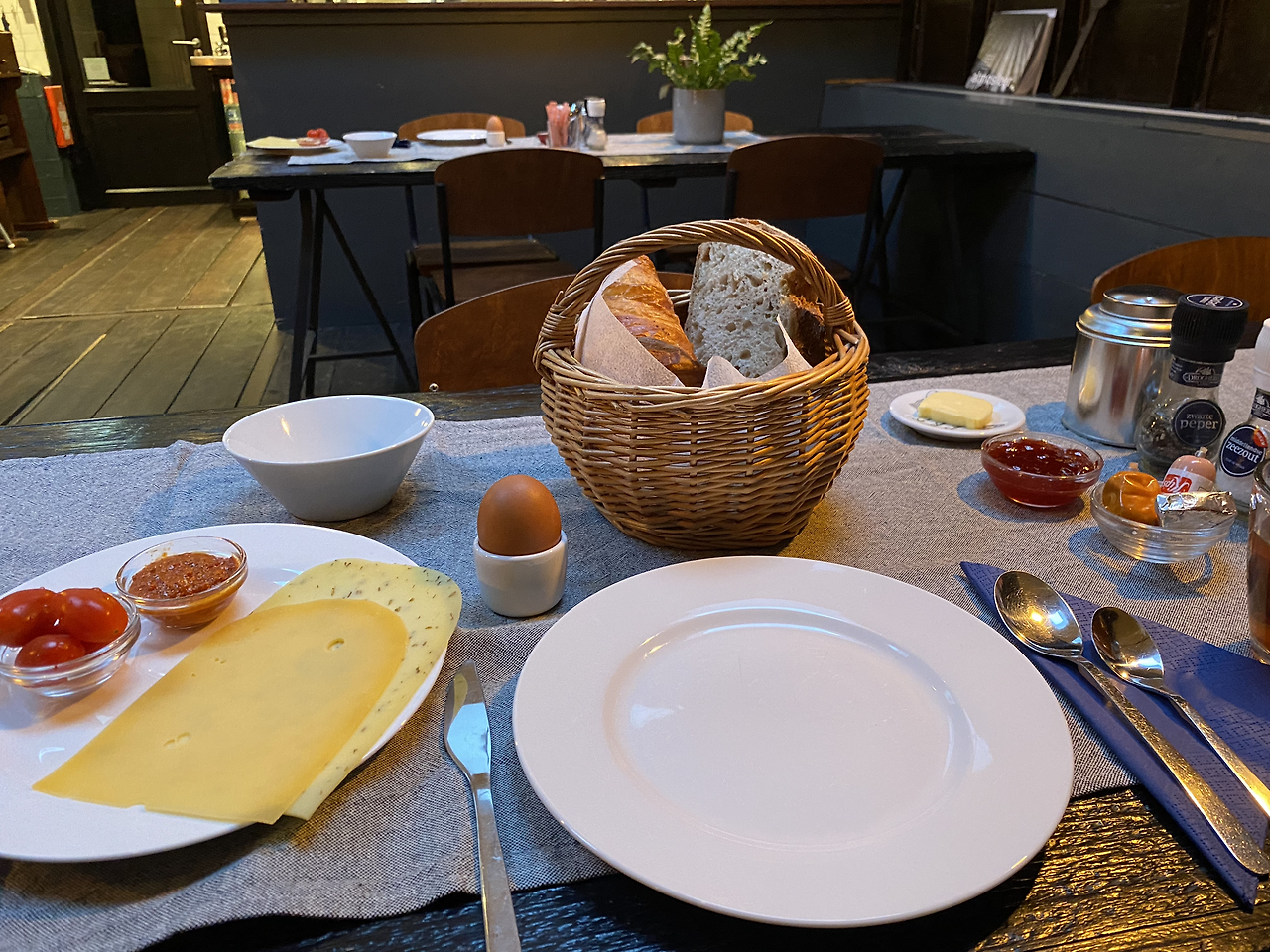정성스레 차려진 조식을 천천히 먹으며