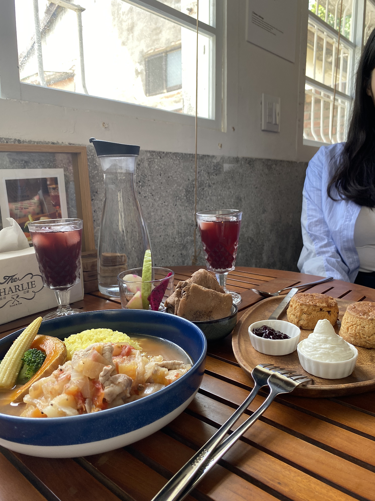 토마토 수프에 스콘 세트로 배를 채우고,