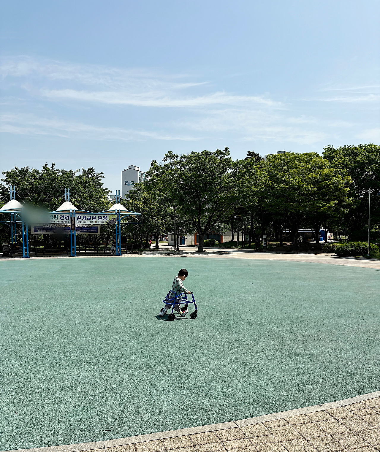 집 근처 공원에 도착하니 입덧 증상도 한결 나아지는 듯하다. 동글이는 차에서 내리자마자 워커를 외친다. 워커를 달라고 워커 워커! 그러곤 워커를 잡고 씩씩하게 공원으로 향한다. 동글이는 일부러 아빠랑 엄마가 가는 방향의 반대로 신나게 걸어간다. 그런 동글이를 보고 있으면 내 입술이 자동으로 씰룩거린다. 동글이는 그렇게 쭉 가다가 뒤를 돌아보며 “엄마!!! 나 빠르지!!!!” 하며 웃기도 한다.