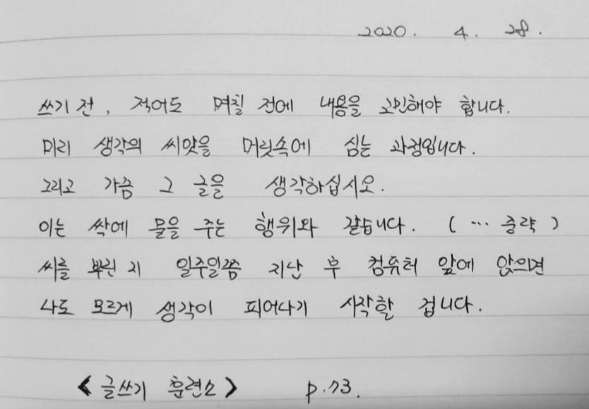 충분히 읽고 많이 써보자. 시간이 필요한 일임을 스스로 받아들이자. 최선을 다하되 부족한 것은 당연하다는 사실을 잊지 말자. 이제 한 김 식히고 읽는 사람이 편안한 글을 고려하며 써볼 차례이다.