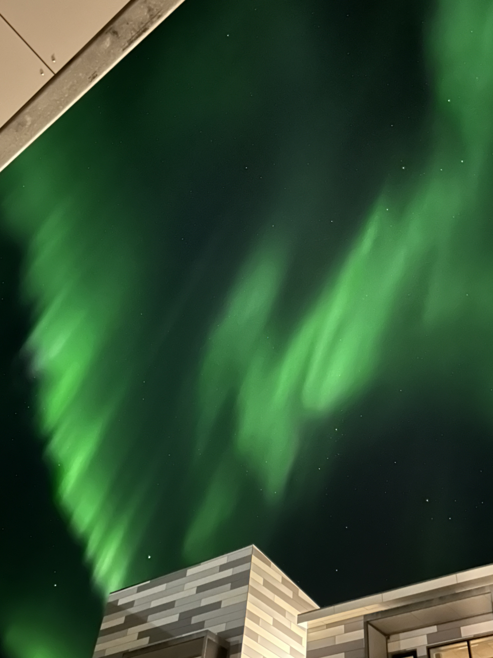 밤 10시 반이 조금 넘은 시각 문득 발코니로 나가보니 그 어느 때보다도 강한 초록 괴물이 하늘에서 춤을 추고 있었다. 집안 불을 다 끄고 핸드폰만 챙겨 밖으로 나갔다. 9월은 춥지 않은 날씨 속에서 오로라 관측하기 최적의 달이다. 물론 항상 그렇게 잘 보이는 것은 아니다. 날씨가 좋을 때만, 밤하늘이 맑고 보름달이 환하게 비추지 않고 눈이 오지 않는 날에 한한다.