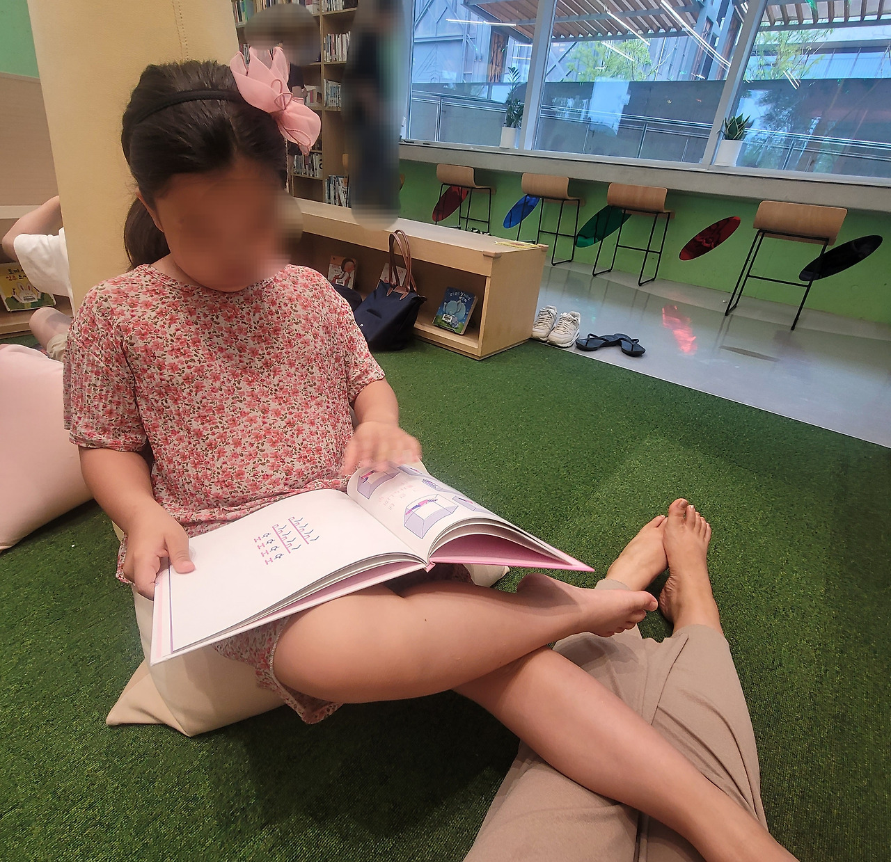 호기심 가득한 딸과 함께 우여곡절 끝에 집 근처 책 읽는 곳으로 갔습니다.
