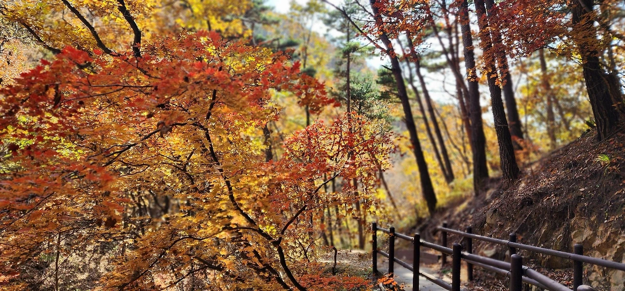 황장목 이야기를 하면서 걷고, 살아온 이야기를 하면서 또 걸었다. 코로나 시기를 어떻게 지냈는지에 대한 이야기 그리고 풋풋했던 스무 살 때의 서로의 모습에 대해 이야기를 나누었다. 그렇게 걷는 둘레길은 힐링이었다. 걸으면서 눈에 담은 치악산의 가을 단풍은 한 폭의 그림이었다. 아침에 투덜거렸던 친구들도 얼굴 가득 행복한 미소로 가을을 만끽했다.