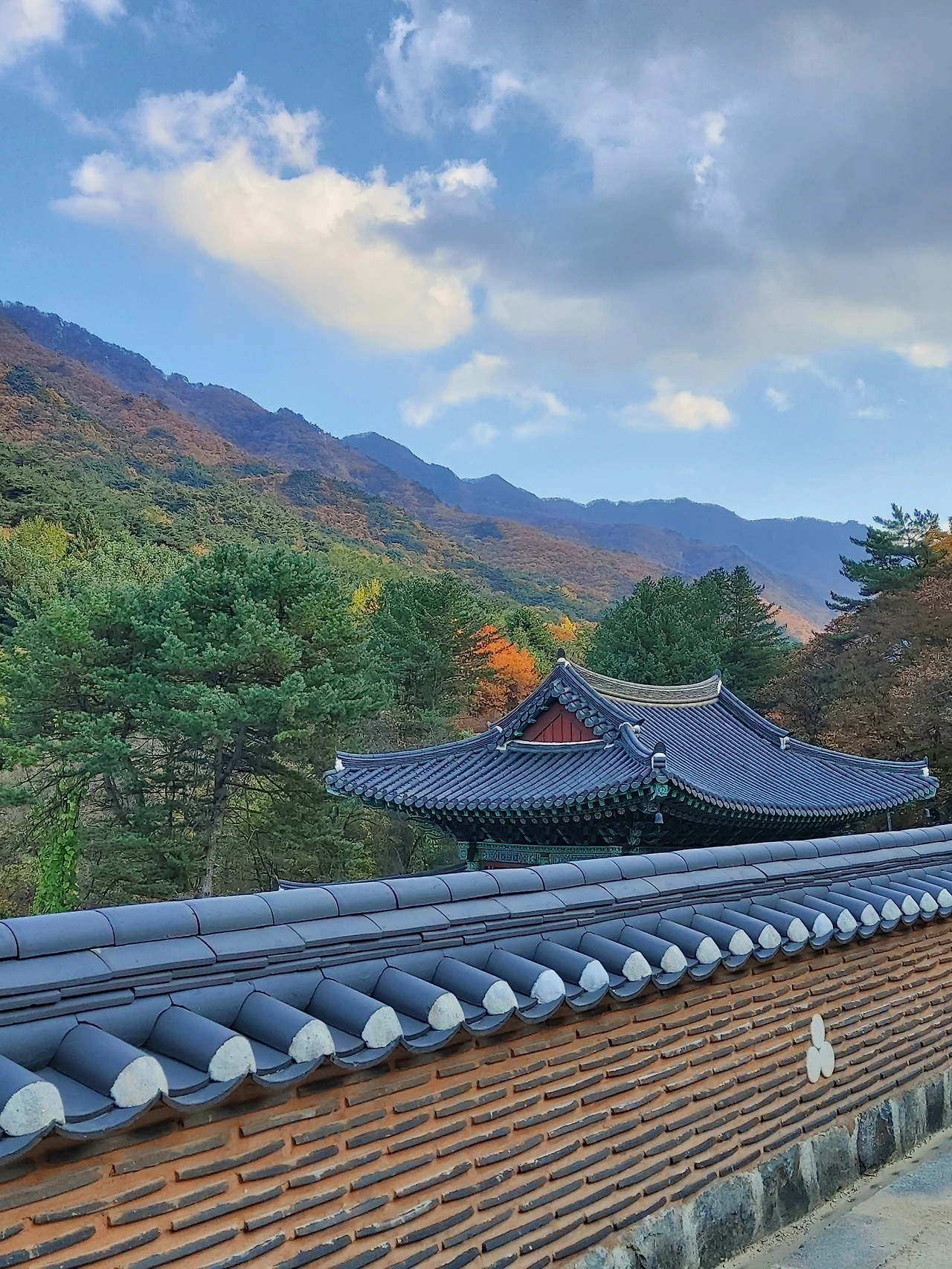 파랗고 높은 가을 하늘과 구룡사 기와와 함께 담은 사진은 환상적인 풍광이었다.
