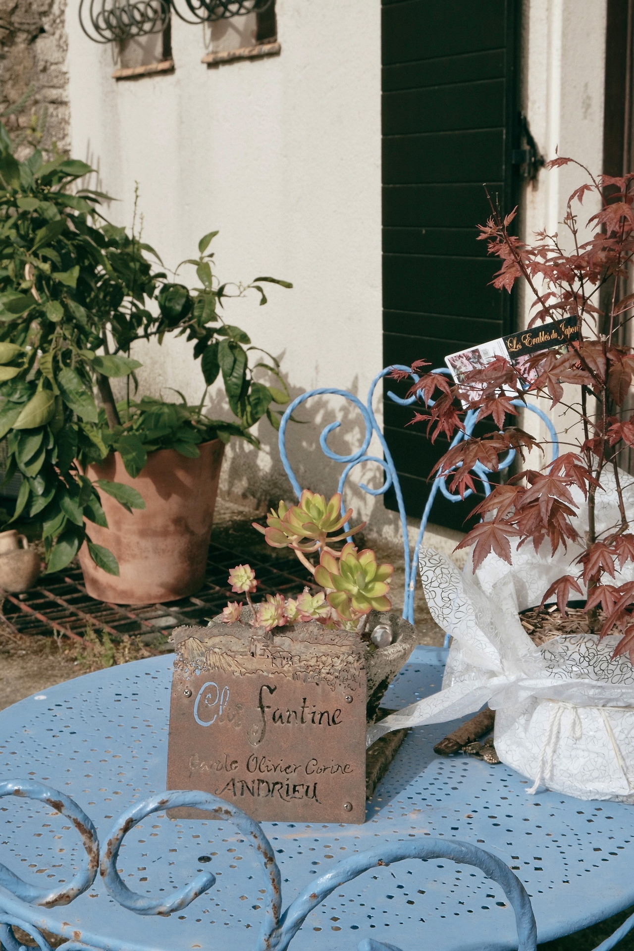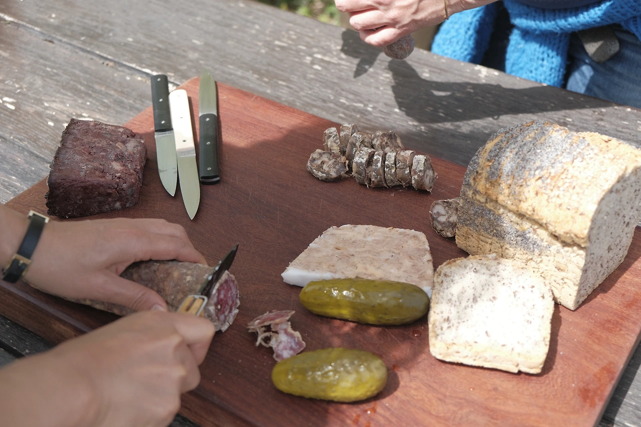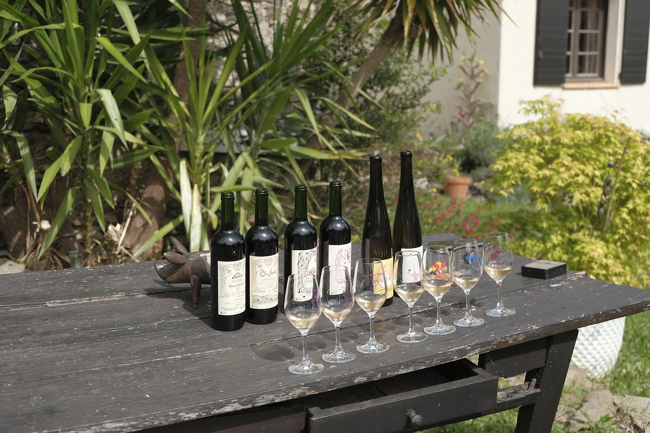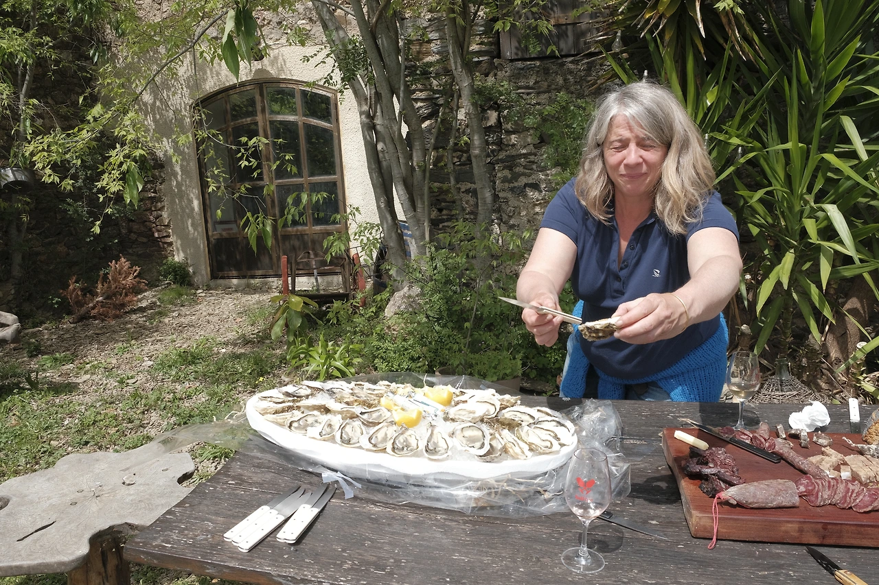 밭을 둘러본 후, 팡틴의 집에 돌아와 마당에서 함께 점심을 먹으며 와인테이스팅을 이어갔습니다.