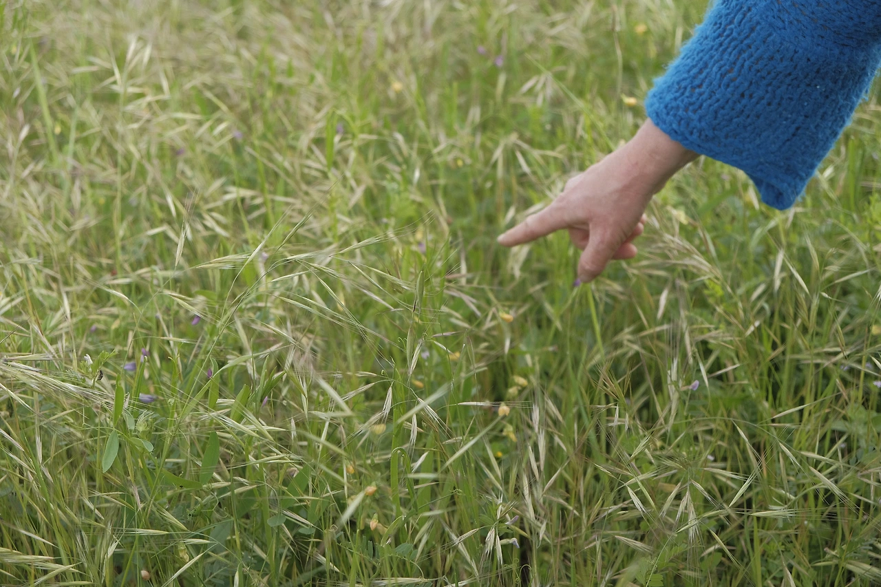 클로버와 보리의 높낮이로 땅의 수분 함량을 체크하고 있어요. 클로버가 더 높이 자라면 땅이 건조함을 뜻하고, 보리가 더 높이 자라면 땅이 습하다는 신호예요. 즉, 곰팡이가 생길 확률이 높아지는 것을 뜻하고요.