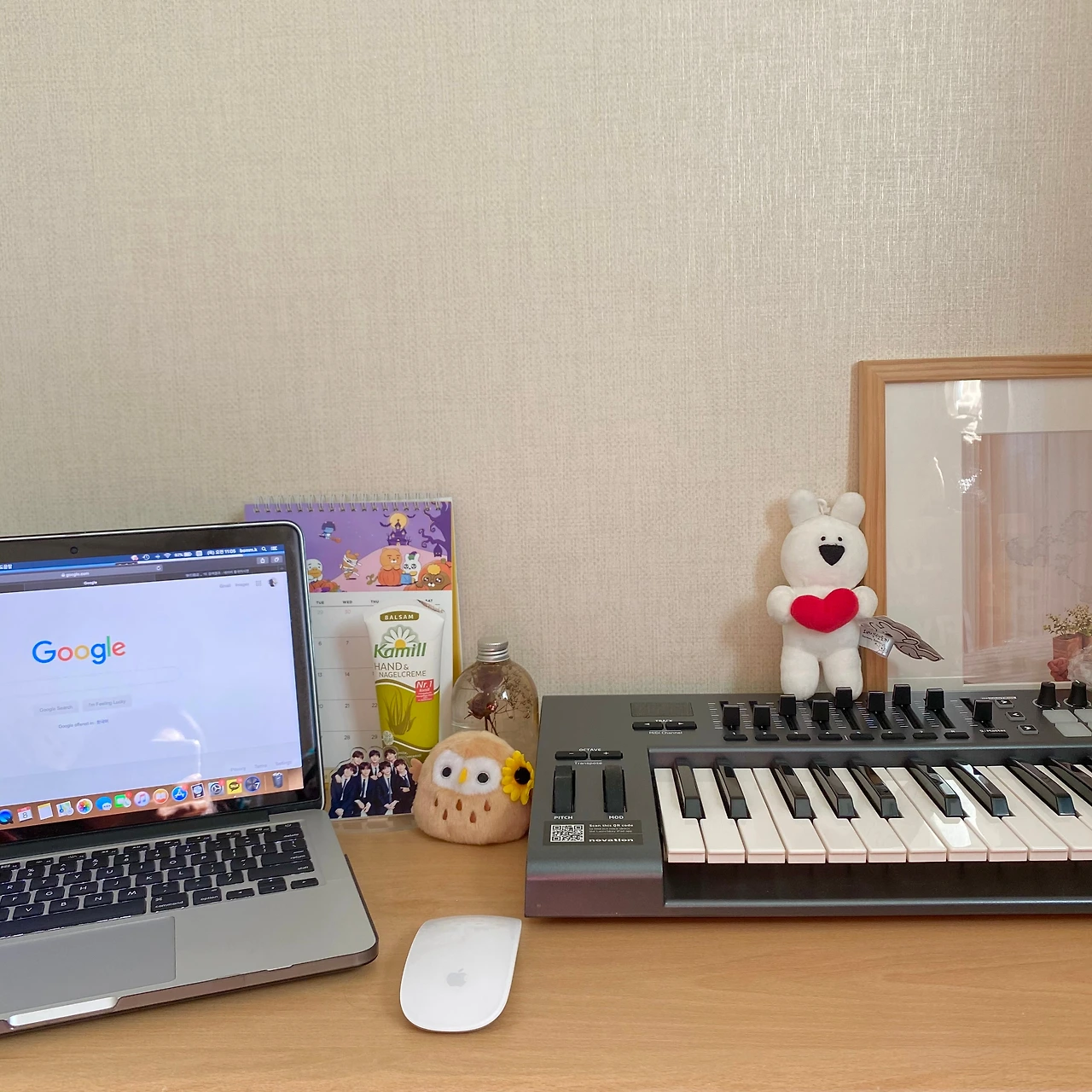노트북과 건반, 액자와 달력, 귀여운 인형들. 바닥을 전전하던 친구들이 하나둘 책상 위에 올랐다.
