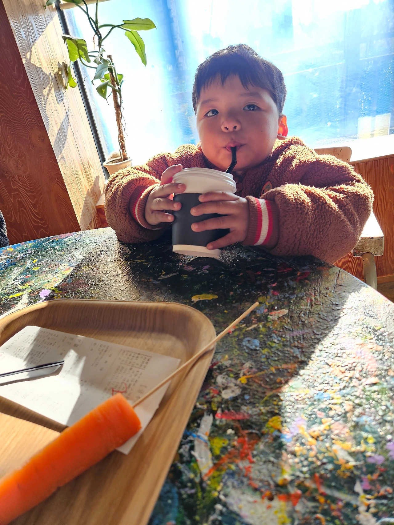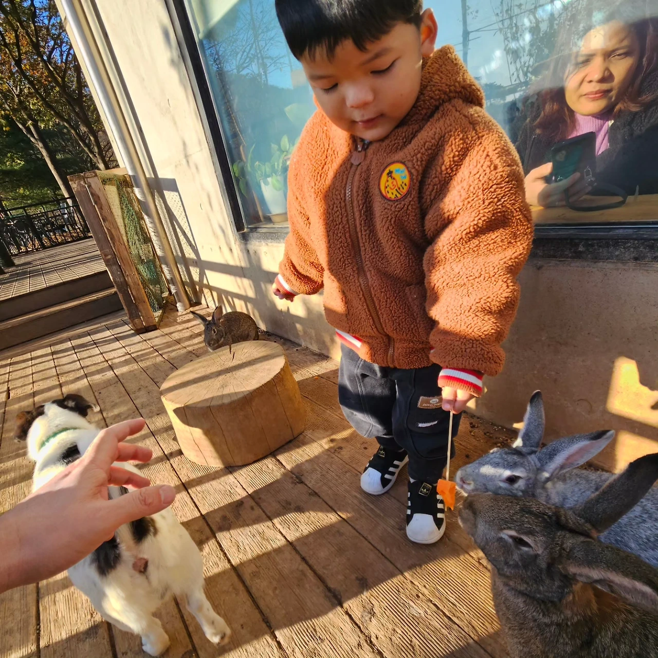 차 한 잘 마시면 토끼 먹이 주기 체험은 공짜고, 차값과 토끼 체험비가 비슷했다. 나와 아내는 아메리카노를 마시고, 아들은 어린이 오렌지주스를 사 주었다. 토끼 체험비랑 어린이 오렌지 주스 가격이 같았다. 아내를 카페에 두고, 카페 옆 토끼랜드에 둘이 들어갔다. 크지 않은 공간이었지만 토끼와 즐거운 시간을 보낼 공간이었다. 당근 하나에 천 원이었다. 하나는 부족했다. 세 개 정도 사 올 걸 하는 생각이 들었다.
