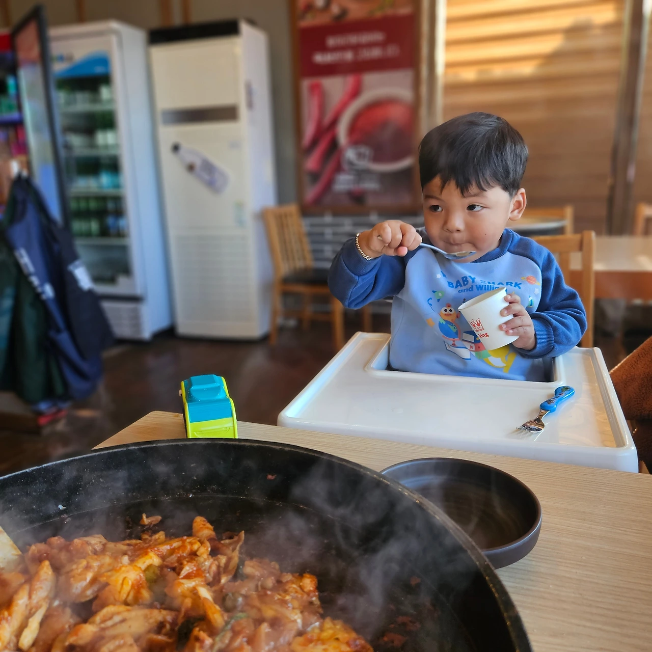 나와 아내는 닭갈비를 먹고, 두 살 아들에게는 주먹밥을 시켜 주었다. 닭갈비는 떡볶이 떡이 제일 빨리 익어 가장 먼저 먹게 되는 게 떡볶이 떡인데, 내 입맛에 맞지 않아 여기 닭갈비는 맛이 없나 싶었다. 닭갈비와 볶음밥은 맛있었다. 닭갈비가 닭과 나중에 볶은밥만 맛있으면 되지 떡볶이 떡 맛 정도는 용서할 수 있다.
