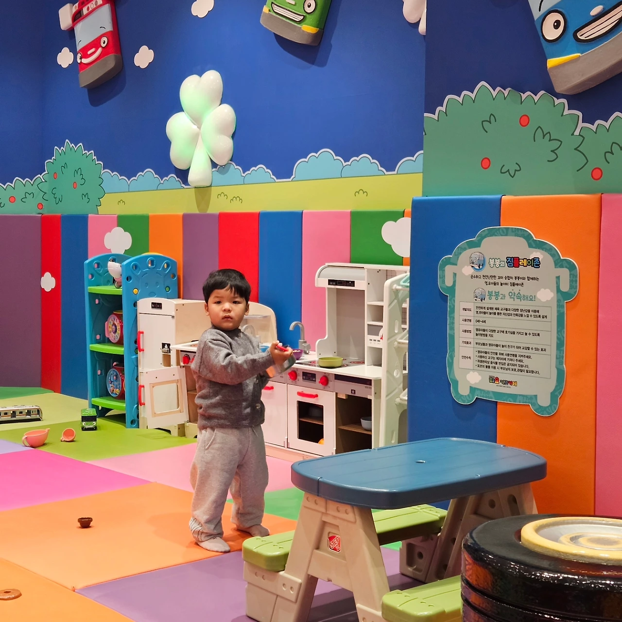 보통의 키즈카페가 공유하는 요소는 갖추면서도, 타요 버스 세계관으로 래핑 되어 있다.