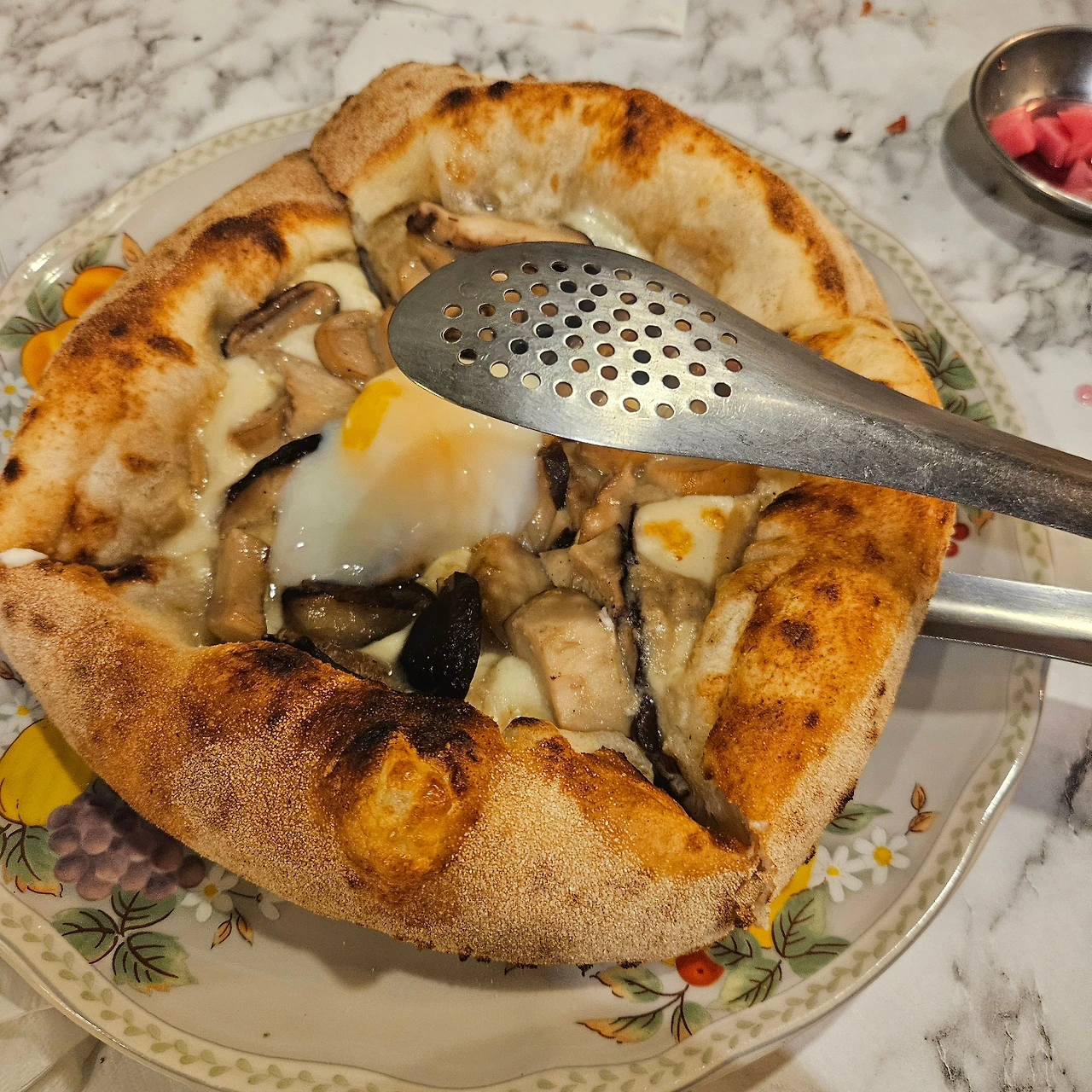 업무 특성상 직원 대부분이 중장년이라 회식장소로 피자집보다는 고깃집이었다. 신라호텔 출신 셰프가 하는 분위기 있는 화덕피자집이었다. 피자도 파스타도 샴페인도 맛있었다. 샴페인 맛은 사과 스파클링 주스인데 알콜 도수가 있는지 알딸딸했다.