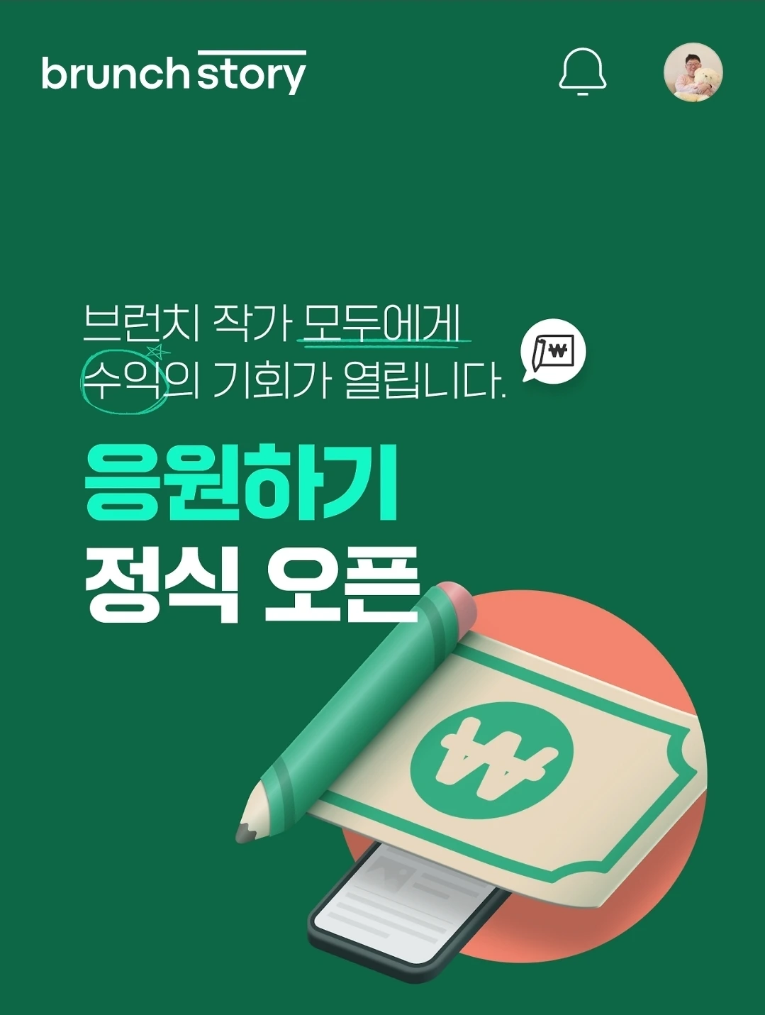 글쓰기가 취미나 부업이 아니라 전업이 되기를 꿈꾸는 사람으로서 브런치가 주요 수입원 중 하나가 되길 바란다.