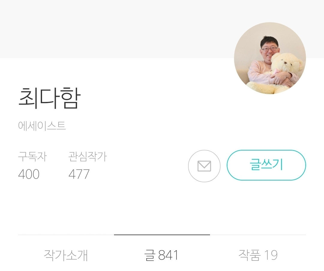 브런치 구독자 400명은 많은 수도 아니지만, 3년 9개월 간 841개의 글을 발행하여 구독자 수가 천천히 자연증가하여 400명이 된 것은 쉬운 일도 아니었다. 45개월 동안 841개의 글을 써 구독자 400명이 된 것 자체보다, 구독과 좋아요의 꾸준한 늘기는 했지만 그 속도가 거북이걸음이었는데, 그 지난한 시간 동안 포기하지 않고 글을 써 온 것에 의미를 둔다. 12번 떨어지고 13번째 붙은 그 자체보다, 그렇게 기약 없이 떨어지는데도 될 때까지 글을 쓰고 브런치 작가에 도전했던 것처럼 말이다.