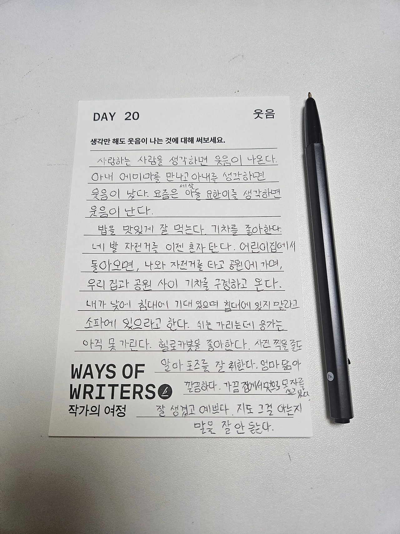 사랑하는 사람을 생각하면 웃음이 나온다. 아내 에미마를 만나고 아내를 생각하면 웃음이 났다. 요즘은 세 살 아들 요한이를 생각하면 웃음이 난다.