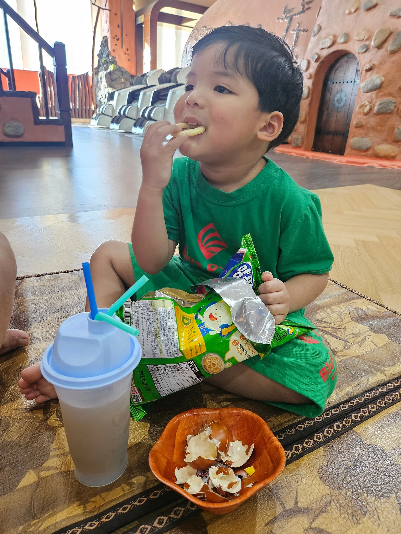 아내 에미마는 근처 엔제리너스 카페에 보내고, 나는 아들 요한이 놀이기구를 태웠다. 5개 이용권을 샀다. 두 개 종류의 자동차를 탔고, 두 개 종류의 기차를 탔고, 대관람차를 탔다. 요한이는 바이킹을 타고 싶어 했는데, 어려서 못 탔다. 또 요한이는 배를 타고 싶어 했는데, 어려서 혼자 못 탔고, 내가 같이 탈 수도 없었다.