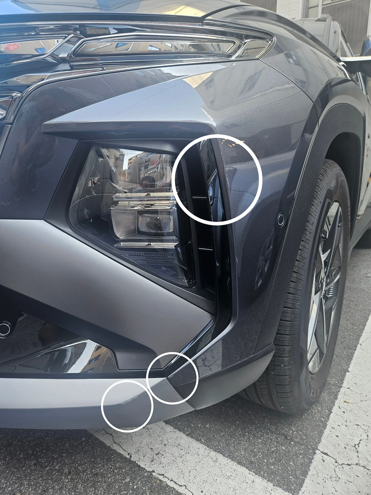 10년도 더 된 중고차였던 첫 차 쉐보레 올란도를 탈 때는 그 정도는 아무것도 아니었다. 그냥 용감하게 탔다. 근데 새 차라 조치를 취해야 할 것 같았다. 차를 산 현대차 딜러에게 전화해 사진을 보내고 문의를 했다. 사진을 보더니 이 정도면 도장을 해야 하지 싶다고 했다. 다음날 토요일 일요일은 근무일이고, 월요일 오늘이 휴무일이었다.