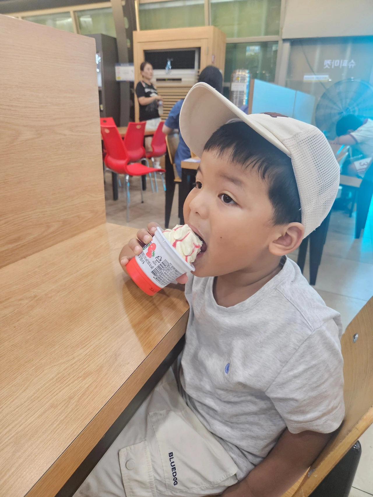 올초 뽑은 투싼을 몰고 음악을 들으며 논산으로 향했다. 어제 일찍 잔 것은 아닌 데다, 오늘 일찍 일어나서, 잠이 모자라서 그런지. 운전하는데 졸렸다. 졸음은 물리치기 어려운 상대다. 요한이랑 둘이서만 가는 길이라 졸리면 멈추어 쉬고 갈 마음을 먹고 있었는데, 마땅히 쉴 휴게소나 쉼터가 보이지 않았다. 내가 논산 오갈 때 주로 들리는 공주의 정안알밤휴게소에 와서야 쉴 수 있었다. 동전이 없는데 동전 뽑기를 해달라고 졸라서, 눈에 보이는 딸기 사달라고 조르는데 딸기가 아닌 탕후루라 사 줄 수 없어서, 달래서 아이스크림 하나 사 주었다.