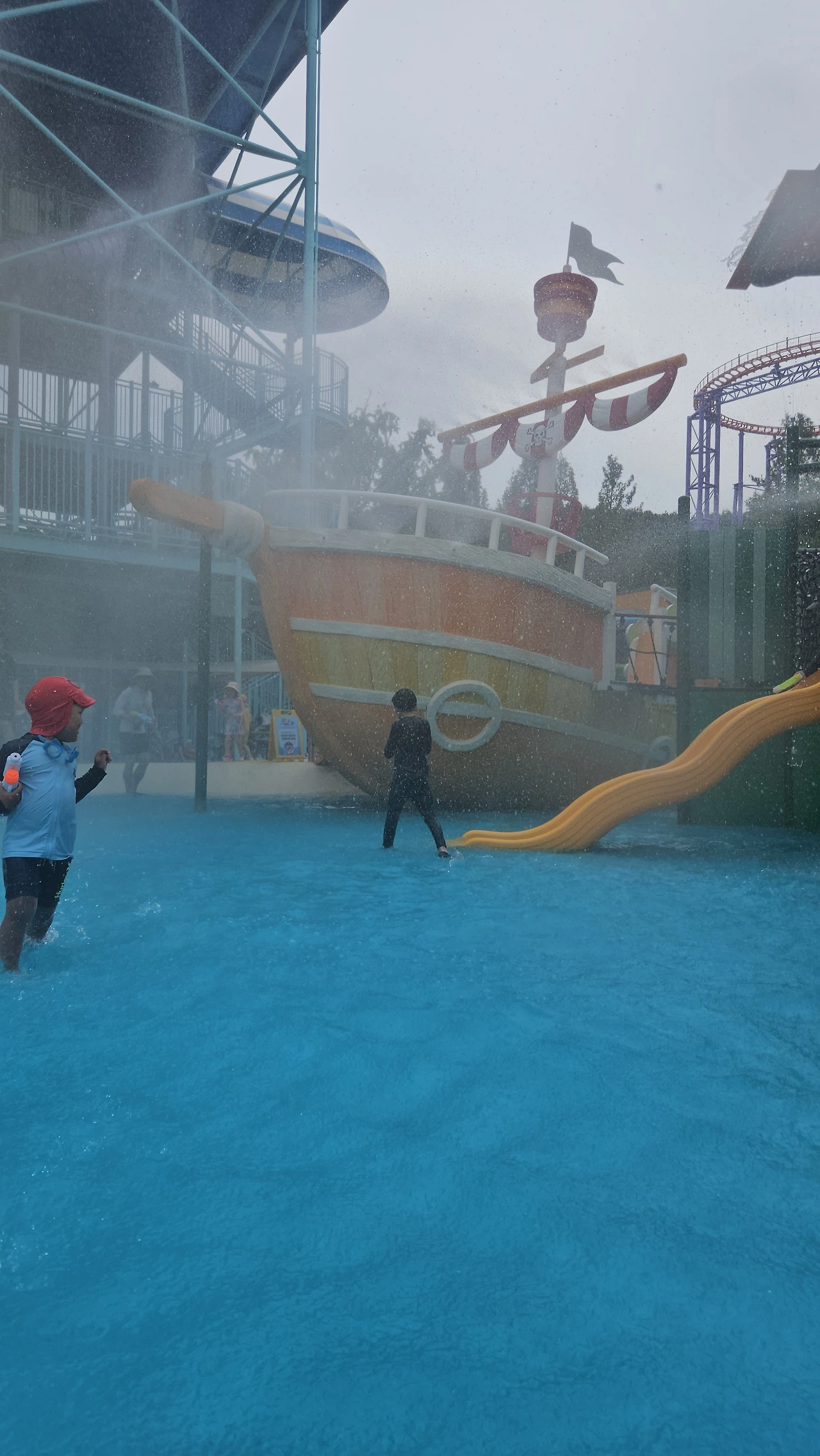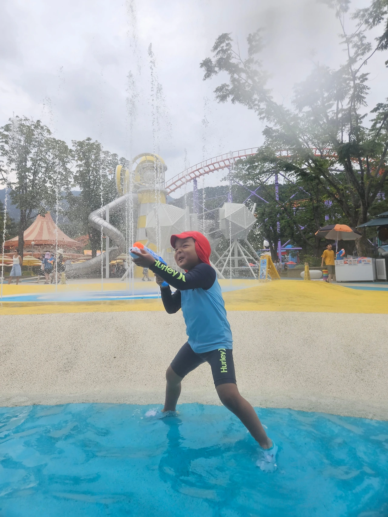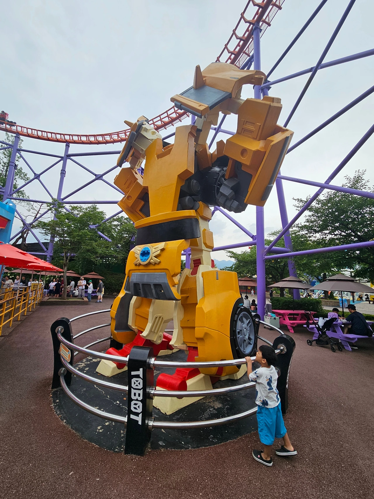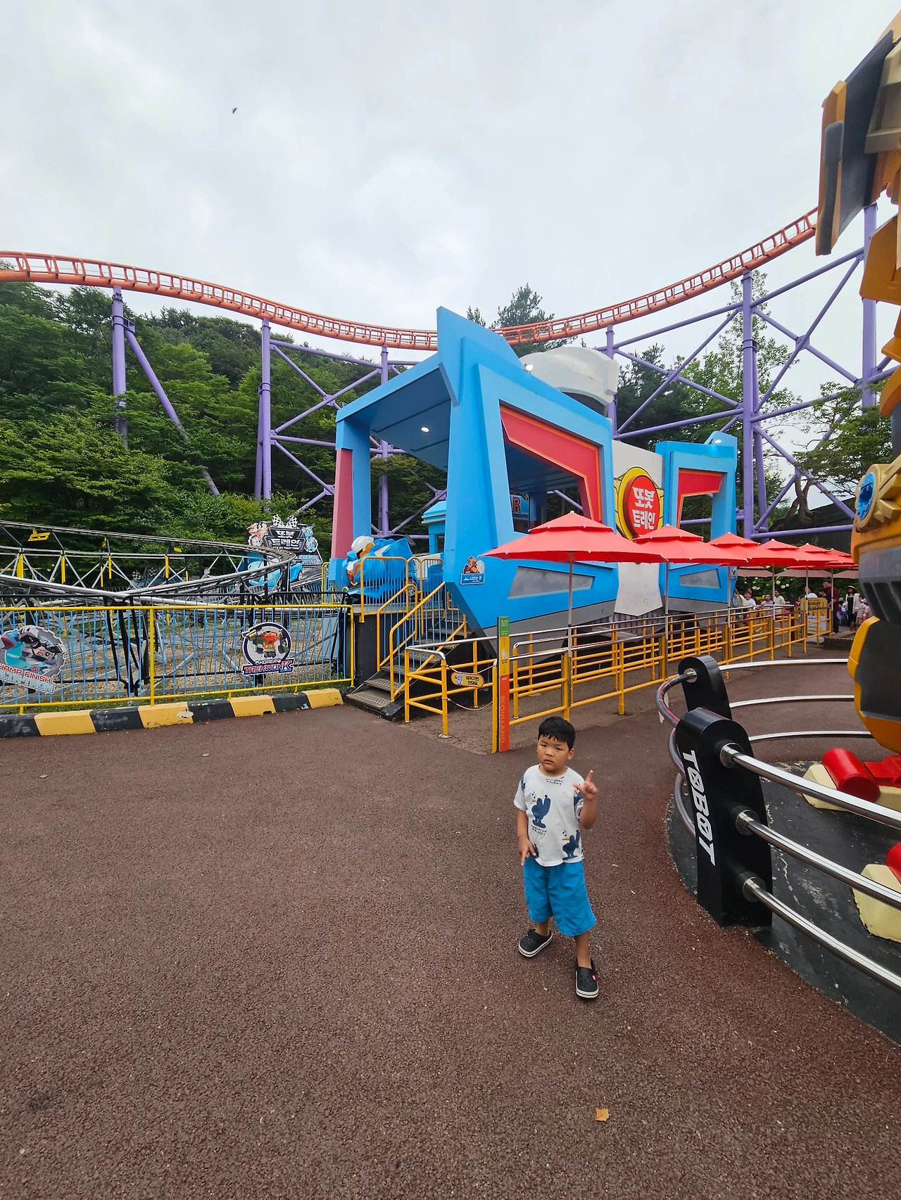 서울랜드 물놀이장의 특징은 물놀이장 뒤로 보이는 뷰가 놀이기구다. 청룡열차도 보이고. 물놀이하고, 점심 먹고, 놀이기구 타다, 집에 와서 저녁 먹을 생각이었는데. 물놀이를 좋아하는 요한이가 물놀이가 아닌 놀이기구에 꽂혔다.