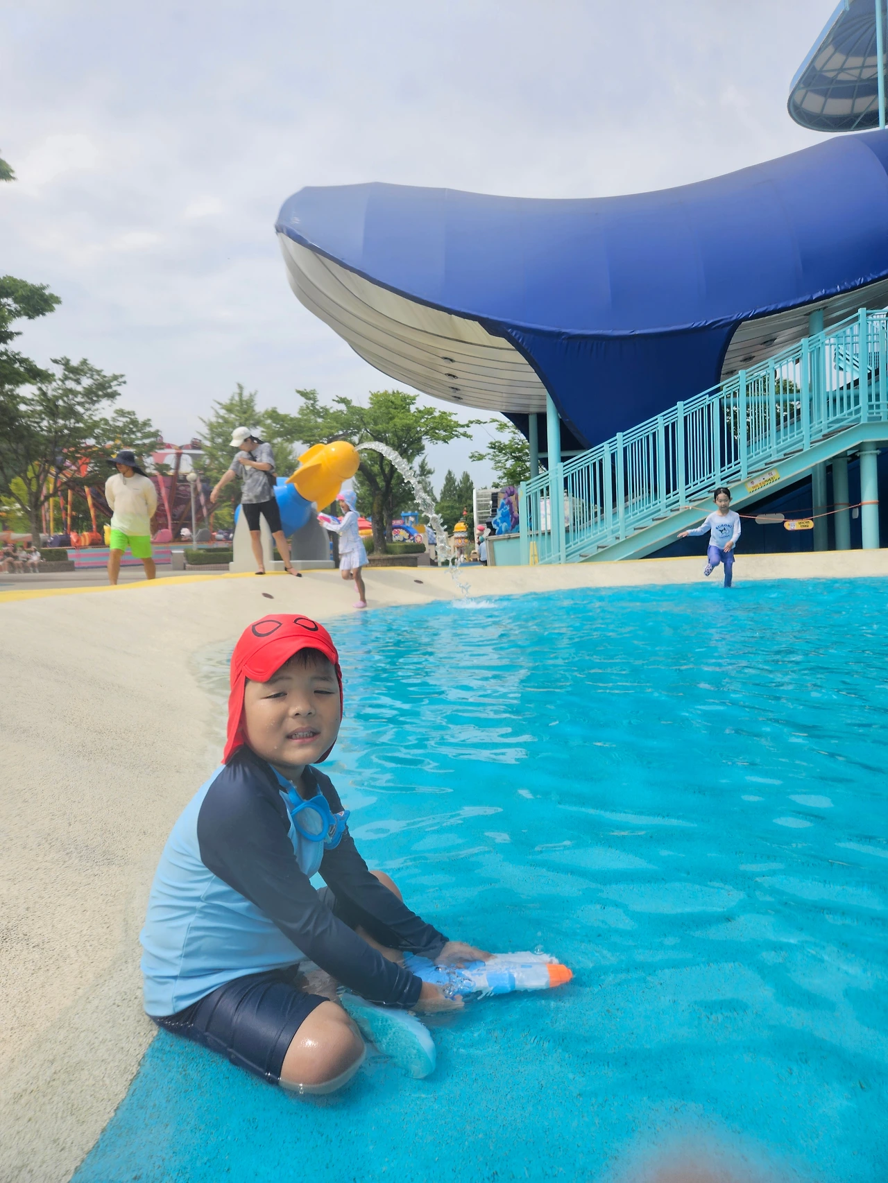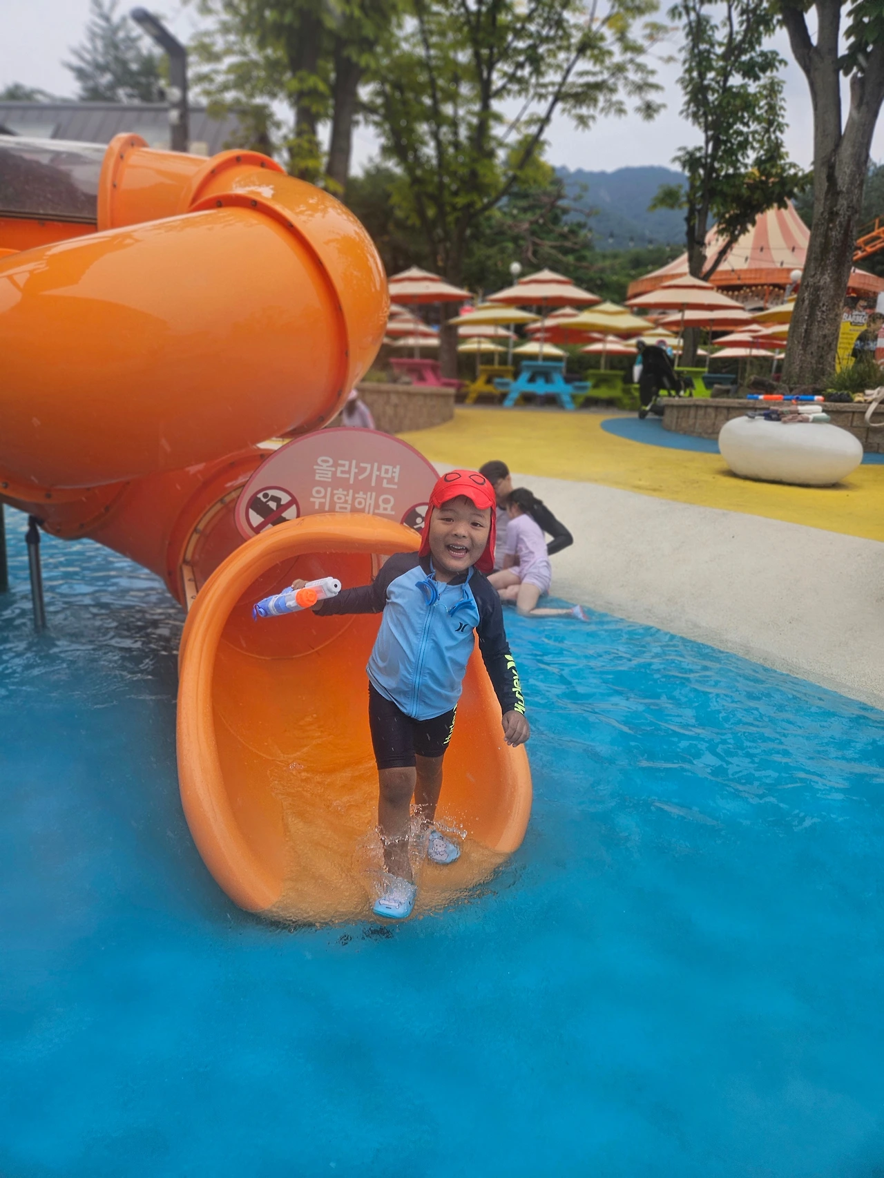 오늘 요한이의 물놀이는 물총놀이에 진심이었다. 다른 아이들이 아빠와 물총놀이를 하니 요한이도 물총 놀고 싶어 져 하나 고르라 했다. 요한이는 째깐한 것 하나를 골랐다. 돈 아낀다고 내 거는 따로 안 샀고, 나는 요한이 물총의 표적과 과녁이 되었다.