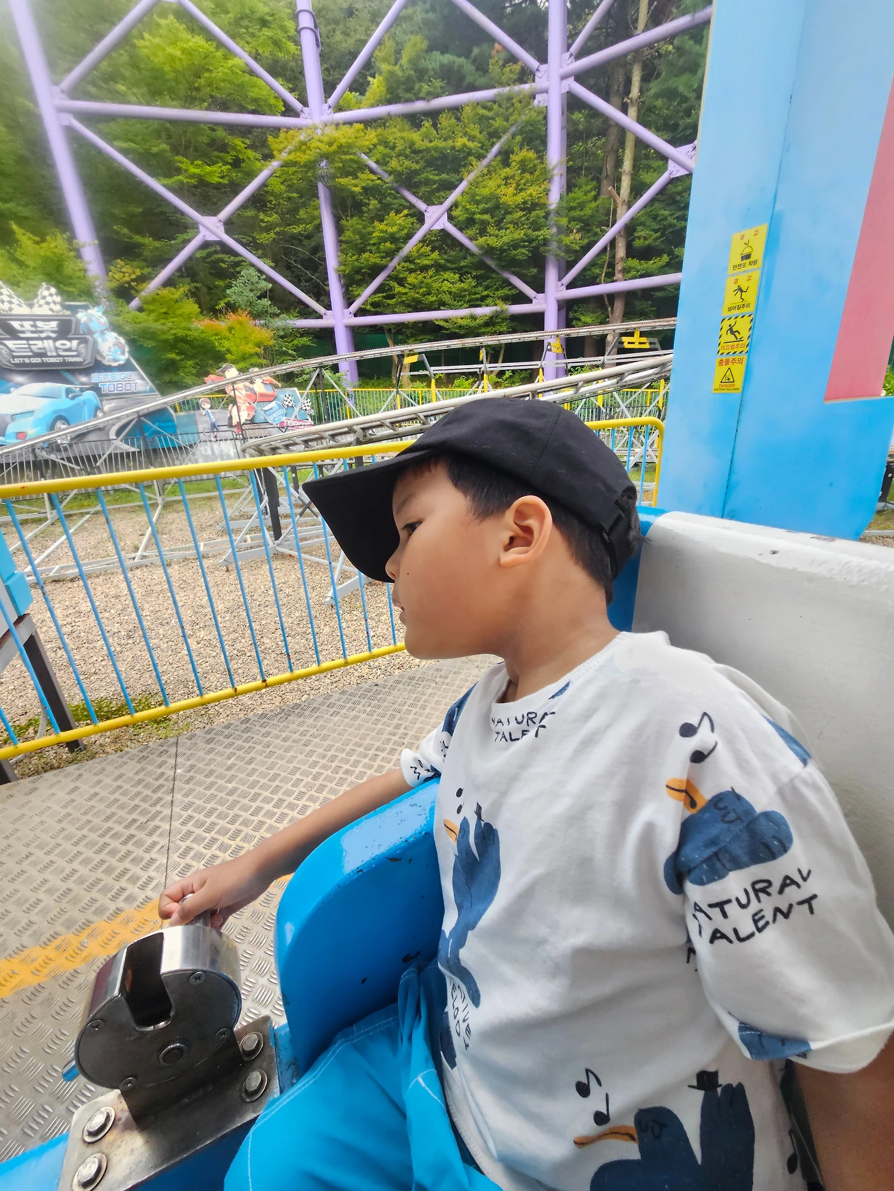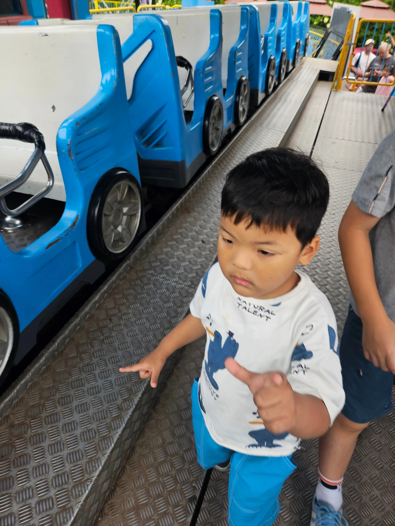 기차는 청룡열차는 아니다. 청룡열차 밑에 청룡열차의 어린이 버전이 있다. 요한이도 아빠랑 같이 타면 탈 수 있는. 두 번 탔다. 재밌는데 무섭다고 더 타지는 않았다.
