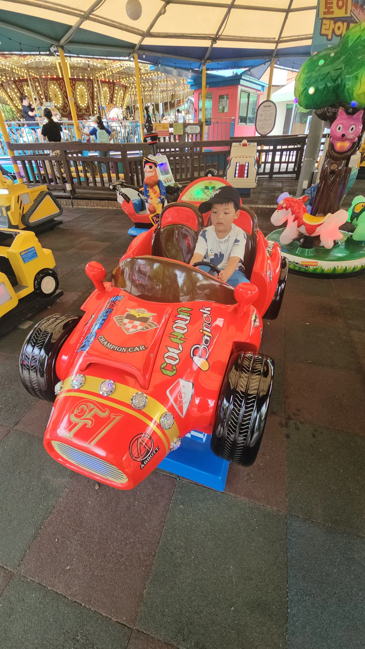 요한이는 동전 넣고 타는 자동차 게임기를 좋아한다. 이런 게임기의 대부분은 동전인데. 가지고 다니는 동전이 없다는 게 문제다. 서울랜드는 카드로 코인을 구매하고, 코인을 게임기에 넣게 되어 있다. 신박한 방법이다. 이런저런 기구를 많이 탔다. 쥬라기 랜드에도 갔고, 키즈카페인 베스트키즈에도 갔다. 핫도그도 먹었다.