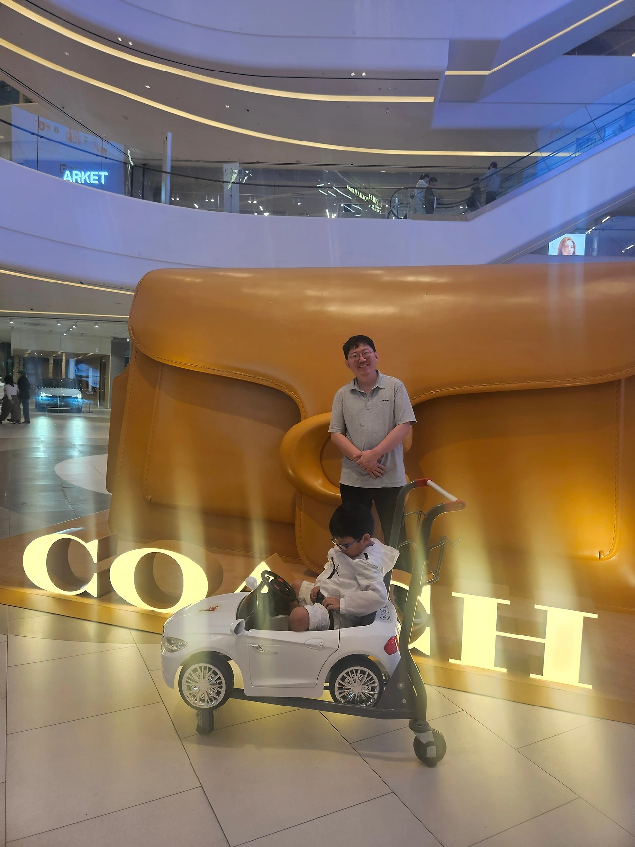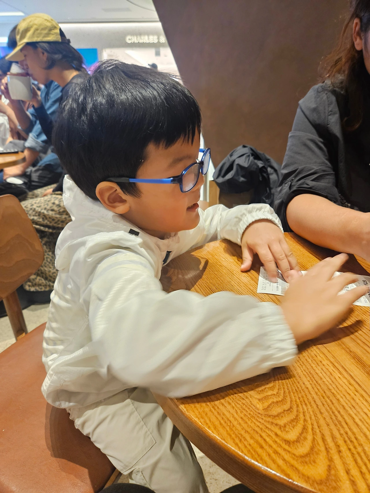 스타필드 스타벅스에서. 아내는 자몽 에이드를, 나는 아메리카노를 마시고, 아들은 딸기 케이크를 먹었다. 아내는 스타벅스에서 한국에 거주하는 네팔임을 대상으로 틱톡 라이브를 하고, 나는 요한이를 데리고 나와 토이카트를 빌려 요한이를 태웠다.