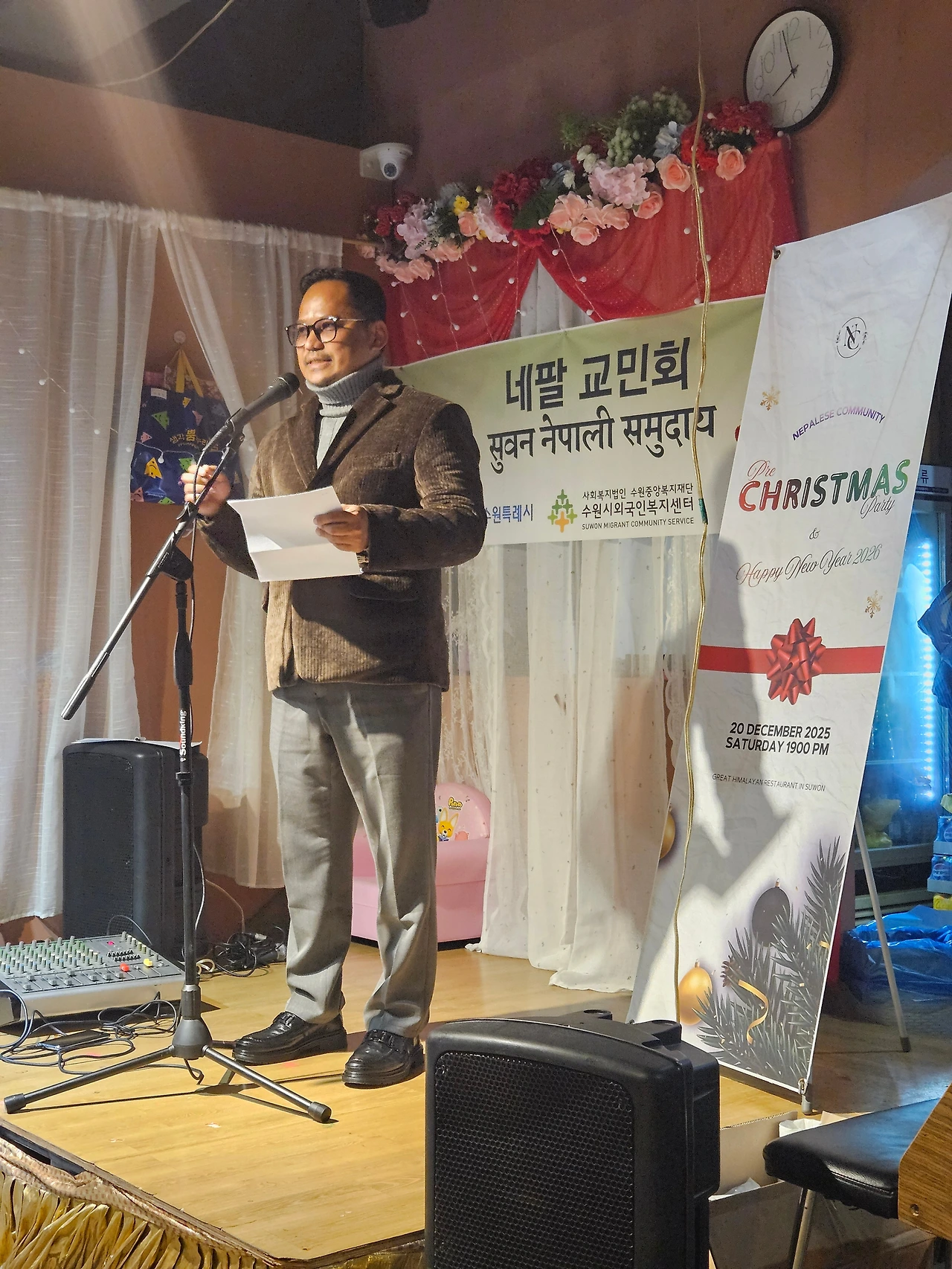 수원 네팔교민회에서 하는 크리스마스 파티가 있었다. 다른 재수원 네팔교민회가 따로 있는데. 여기 교민회는 수원의 큰 교회에서 시의 위탁을 받아 운영하는 외국인 복지센터에서 하는 교민회다. 우리 가족이 교류하는 산제이 전도사님이 센터 직원이며, 네팔 교민회장이다.