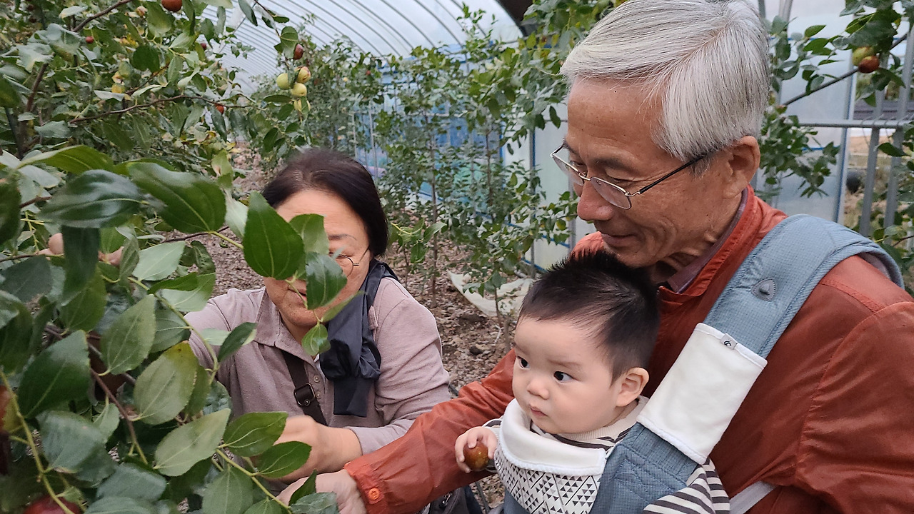 오전에 열심히 따고, 오후에는 오늘도 왕대추를 열심히 분류했다. 오늘 오전에는 가장 예쁘게 달린 3번 밭은 따지 않았다. 나의 조카이자, 나의 부모님의 손자이며, 내 동생의 아들인 아가 다솔이가 오기 때문이다. 태어난 지 아직 일 년도 되지 않은 아기인데, 다솔이가 대추를 따러 온다고, 아버지께서는 손자가 딸 대추를 남겨 두셨다. 동생 부부가 아가 다솔이를 데리고 농장이 있는 시골집에 놀러 와서, 가장 예쁘게 익은 대추를 팔기 위해서 따지 않고, 아직 대추가 뭔지 알지도 못할 아가를 위해서 남겨 두었다. 그것이 할아버지 할머니의 사랑이다.
