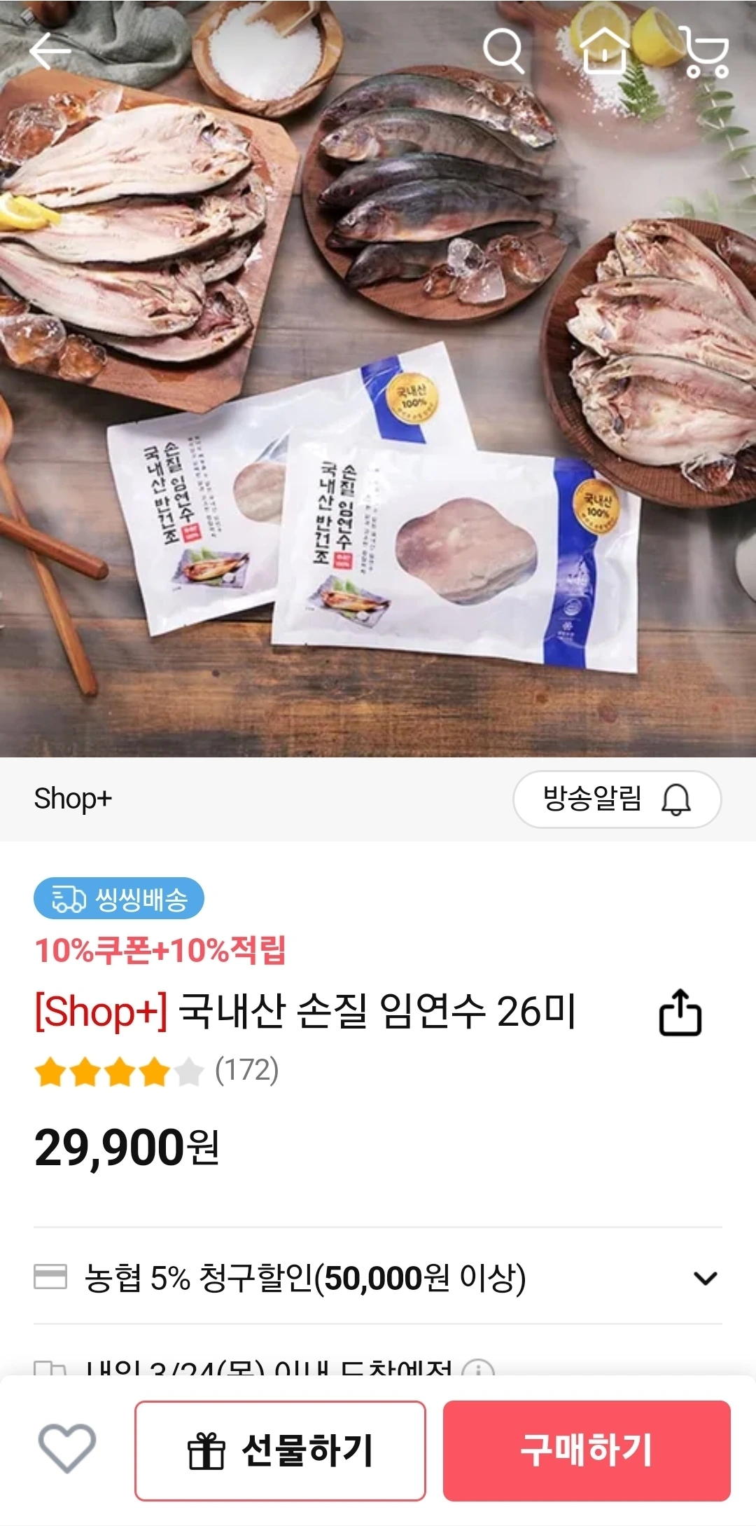 임연수 홈쇼핑 방송이 나오고 있는 TV 화면 귀퉁이에 QR코드가 보였다. 사진 모드로 스마트폰을 가져다데니, 연결된 링크가 스마트폰에 떴다. NS홈쇼핑에 가입을 하고, 임연수를 샀다.