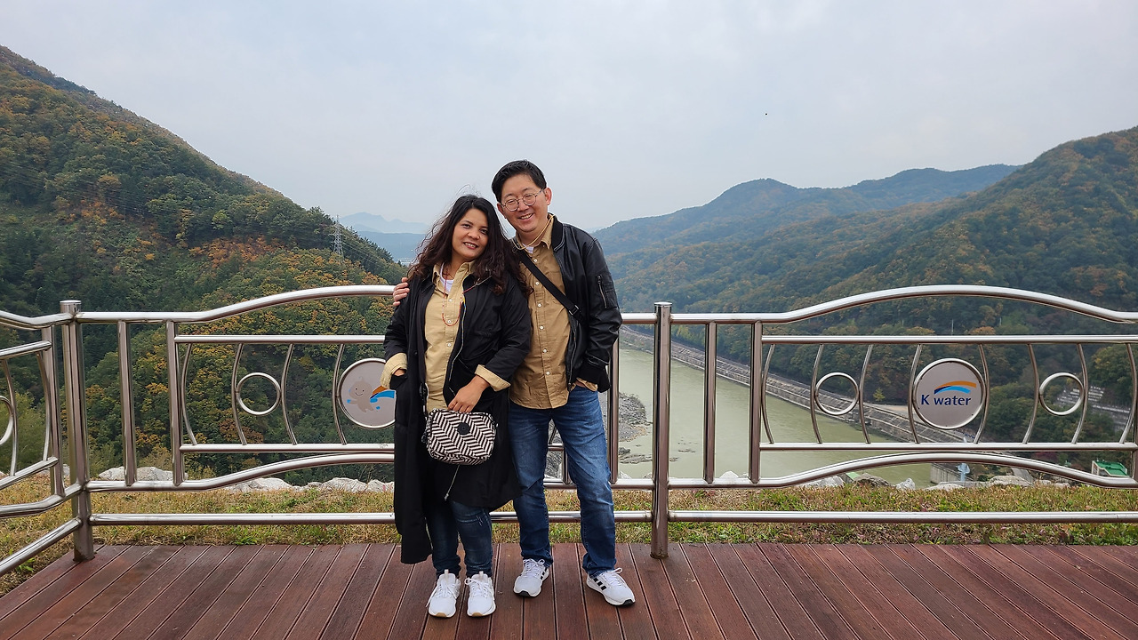 원래 계획은 점심 먹고 커피는 우리가 살려고 했는데, 우리 나이가 한참 일할 때이라서 그런지, 며칠 전에 친구와 스케줄을 잡을 때는 없었던 일이 생겼나 봅니다. 처음에는 12에 춘천역에서 보기로 했는데, 친구의 일정 변경으로 11시 10분경 춘천역에서 만나 이른 시간에 닭갈비를 먹었습니다. 지난번에 결혼 전 친구를 만나러 춘천에 왔을 때는, 친구가 닭갈비를 사 주고 구봉산 카페에 차로 데리고 가서 아름다운 자연의 풍경을 보며 아메리카노 한 잔씩 하고 내려왔습니다. 이번에는 커피 마실 시간은 없는 듯했지만, 식사 후 차로 우리를 데리고 소양강 댐으로 데리고 갔습니다. 저는 예전에도 소양강 댐에 가 본 적이 있었지만, 어떤 풍경은 올 때마다 새롭고 아름다운 것 같습니다. 아내는 소양강 댐에서 아름다운 자연의 풍경을 바라보며 매우 즐거워했습니다. 저는 행복해하는 아내 에미마의 모습을 보며 더더욱 행복해졌습니다.