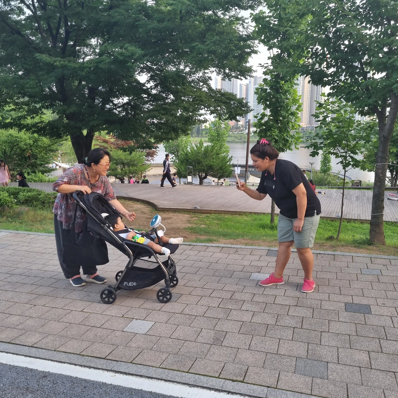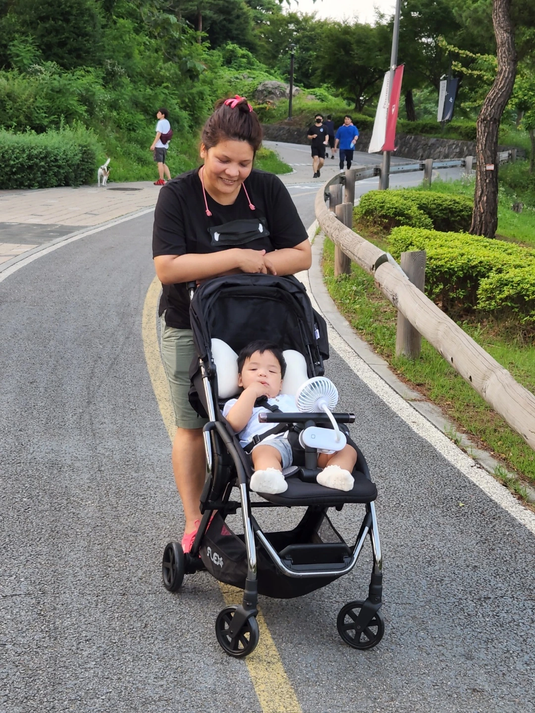 어머니께서 사 주신 새 휴대용 유모차를 끌고 나들이를 다녀왔다.