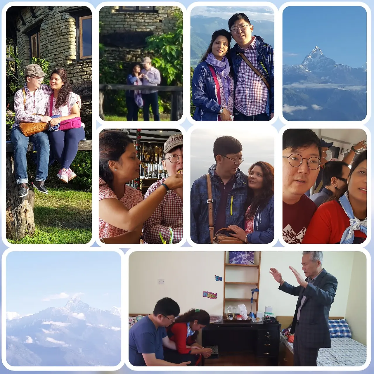 다음 날 에미마 부모님을 보내드리고 우리 부모님과 넷이서 히말라야의 도시 포카라로 약혼여행을 떠났다. 원래는 오스트리안 캠프로 트래킹을 가려했는데, 어머니께서 마침 그때 족저근막염으로 많이 걷기 힘드셔서, 차로 갈 수 있는 곳에 가서 아름다운 풍경을 보며 커피를 마시고 이야기 꽃을 피우는 여행을 했다. 카트만두에서 포카라까지는 국내선 비행기를 타고 이동했고, 포카라에서는 짚차 한 대 빌려서 다녔다. 렌터카를 빌린 것은 아니고, 현지인 운전사까지 빌렸다. 아버지 친구분 아들인지 조카인지 마침 포카라에서 사시는 한국 분이 있어 가이드를 해 주셨다.