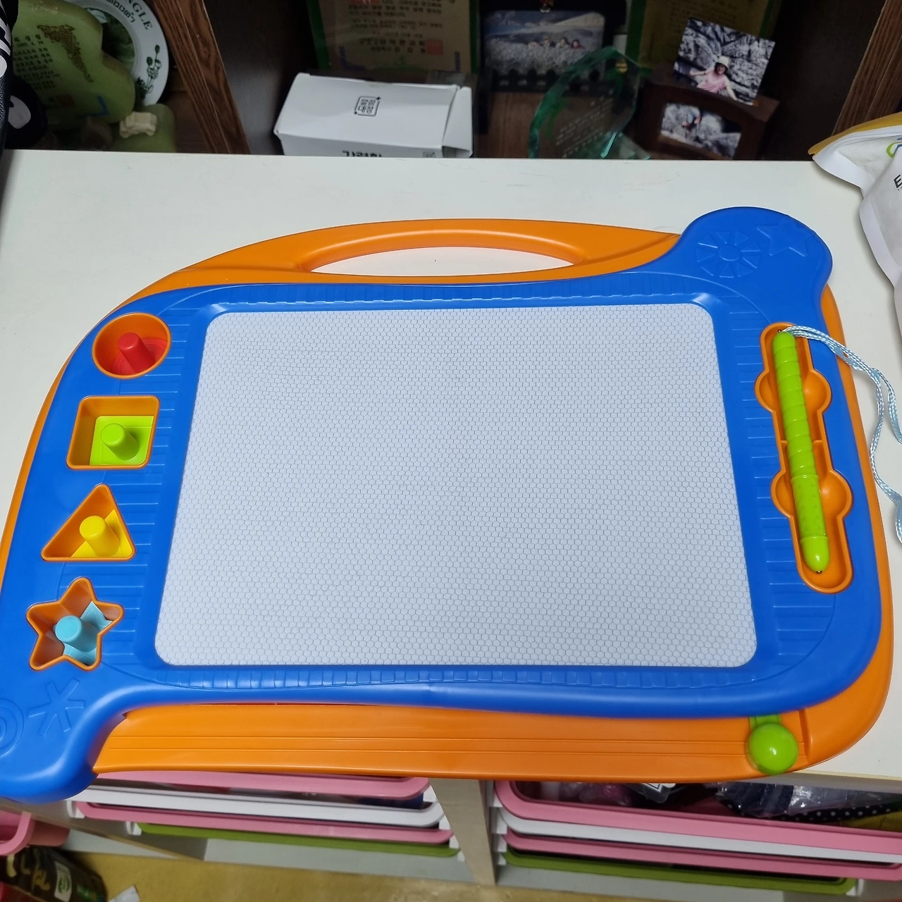 월급이 떨어져 가는 때라 쓸 돈은 많지 않았다. 비싸지 않은 식당에서 점심을 먹고, 장난감 대형매장에 가서 요한이 장난감 두 개를 샀다. 아직 요한이는 자기가 원하는 장난감 사 달라고 떼쓰기 전이다. 엄마 에미마가 장난감을 골랐다. 하나는 영어 알파벳 장난감이고, 하나는 그리기 패드 장난감이다.